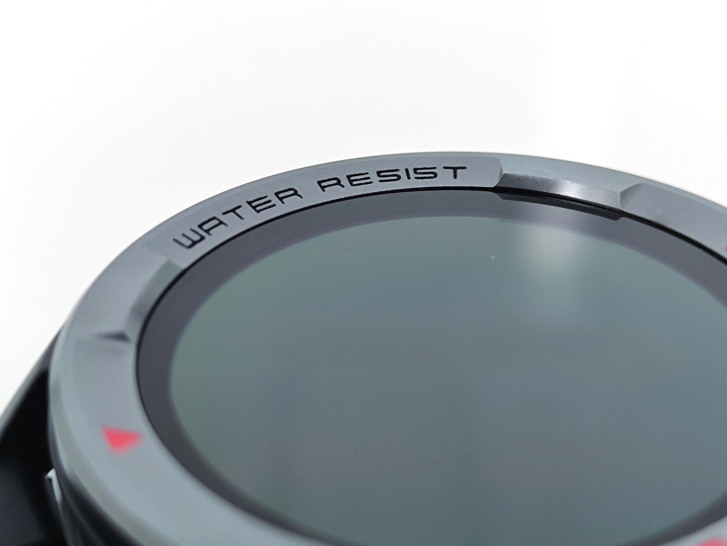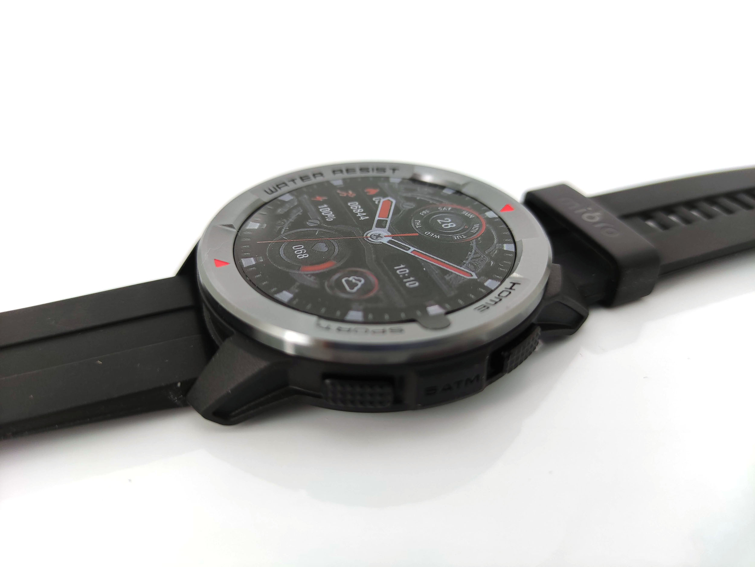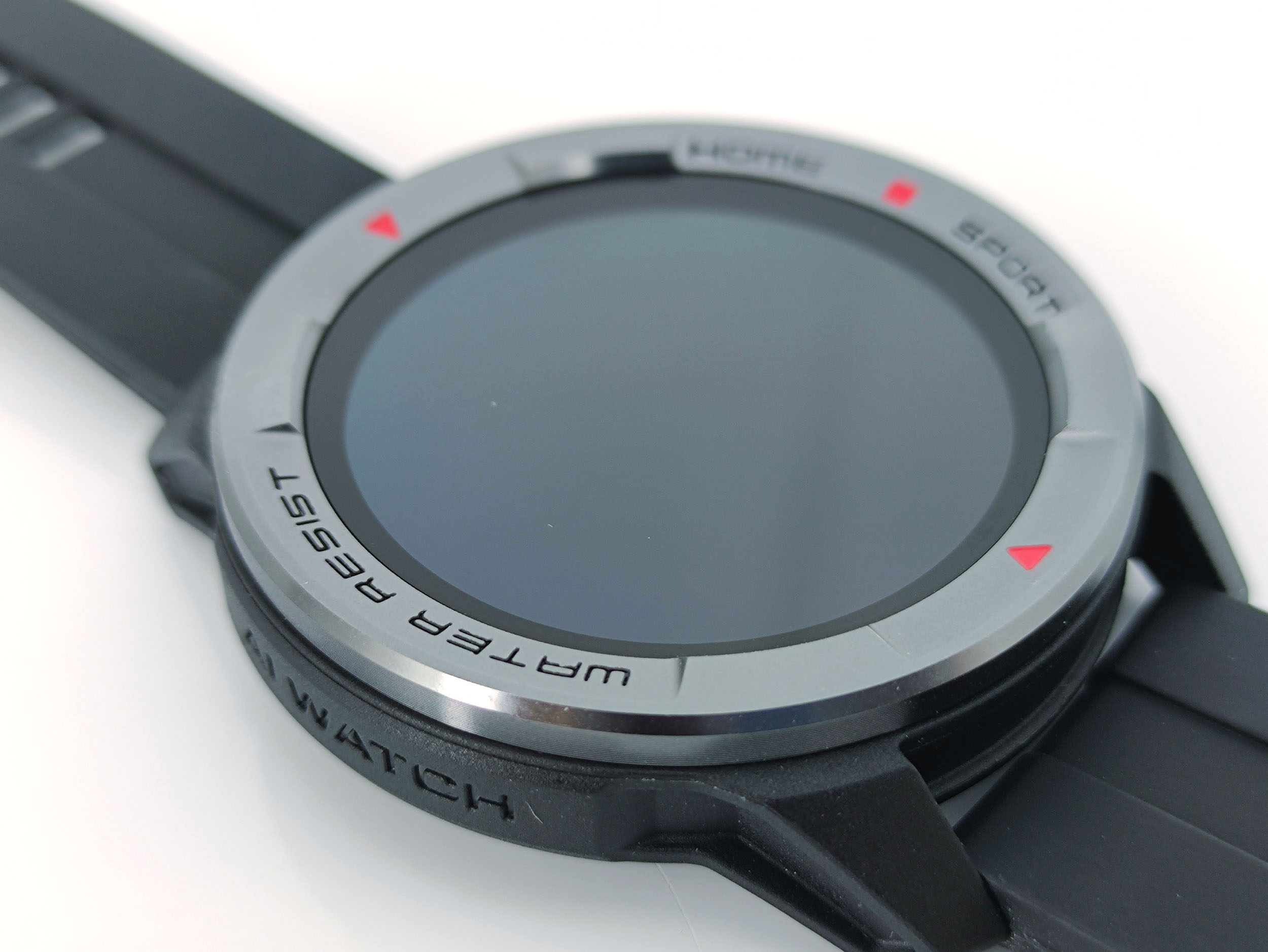 La Mibro Watch X1 est principalement composée de plastique rigide lui donnant un aspect plus solide. Son cadran est entouré d'un cerclage à effet métallique renforçant un peu cette sensation de solidité, le cerclage est également en plastique. Le cerclage est fixe/statique, il peut donner l'impression d'être mobile ou d'être tactile mais il est en réalité purement décoratif.