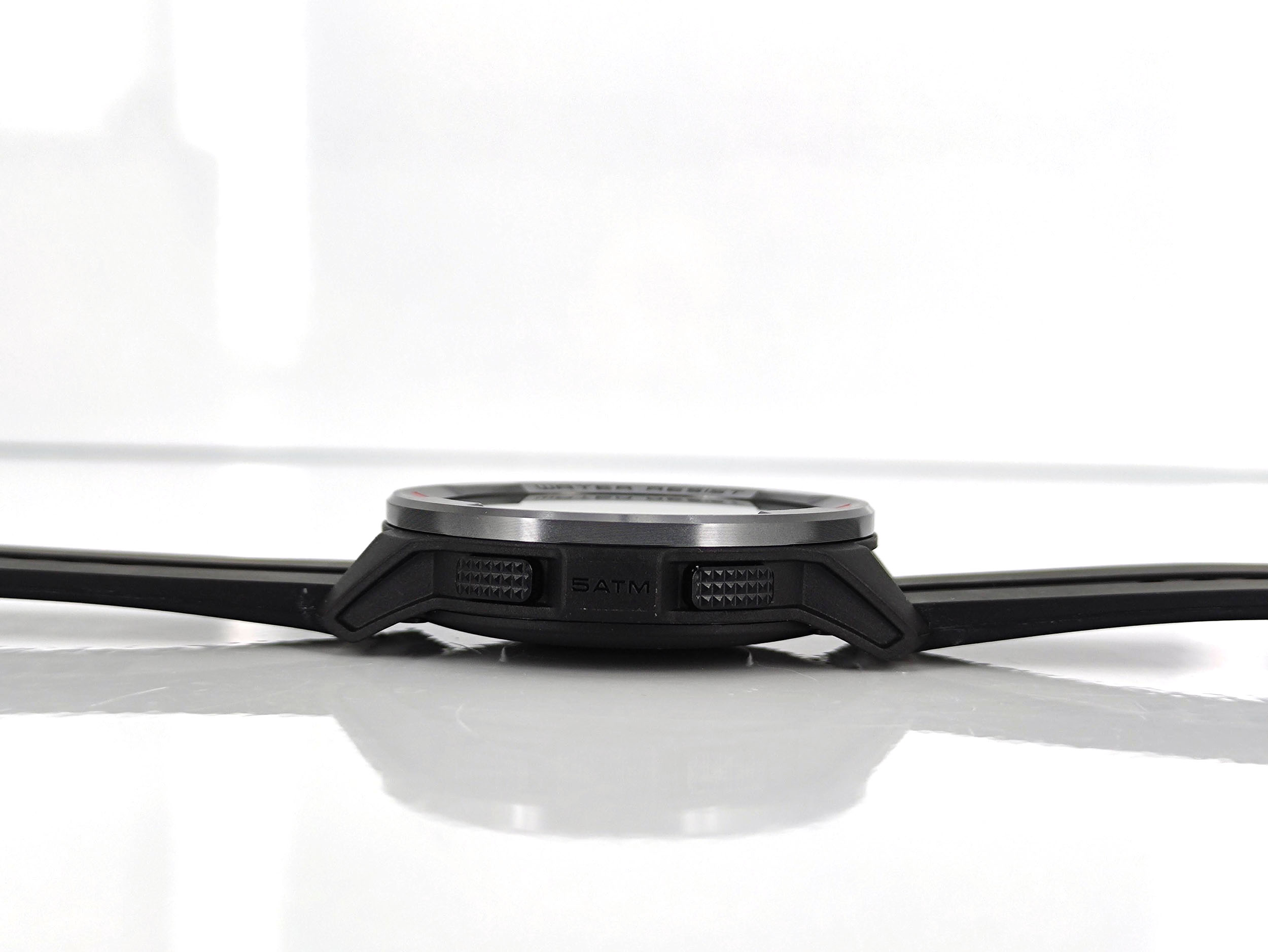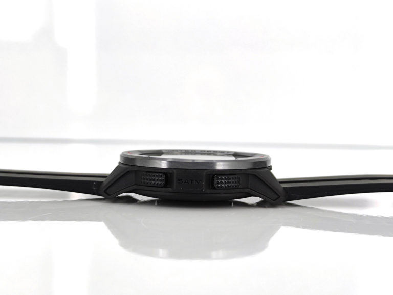 Les boutons sur le côté sont larges et plats, ils ne vont donc pas accrocher le textile de vos vêtements ni exercer une pression sur la peau lorsque vous pliez votre poignet. Le bouton du dessus permet d'accéder aux fonctionnalités principales de la montre, celui du dessous permet d'accéder aux modes sportifs.