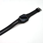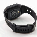 L'écran n'est pas très grand (1.3 poucess) et il est protégé par d'épaisse bordure anti-choc, c'est d'ailleurs cette bordure qui donne l'identité rétro de la montre. L'écran tactile permet d'interagir avec la montre et les deux boutons sur le côté permettent d'allumer la montre (premier bouton) ou d'accéder à la liste des sports supportés (deuxième bouton).