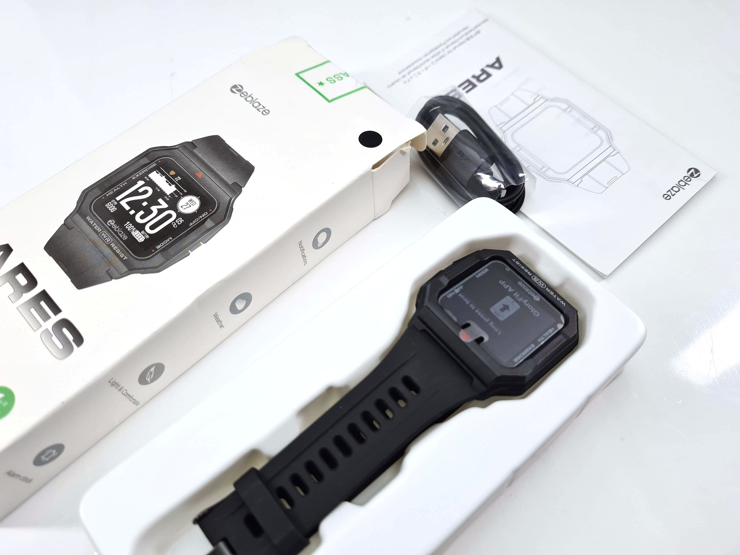 Le packaging de la Zeblaze Ares est très simple. La montre est posée dans un moulage en plastique et accompagnée d'un manuel ainsi que d'un cable de rechargement. Lorsque j'ai reçu la boite, j'ai cru qu'elle était vide tellement elle était légère. Ce n'est pas étonnant car la montre pèse seulement 33 grammes, je n'ai jamais vu ça.