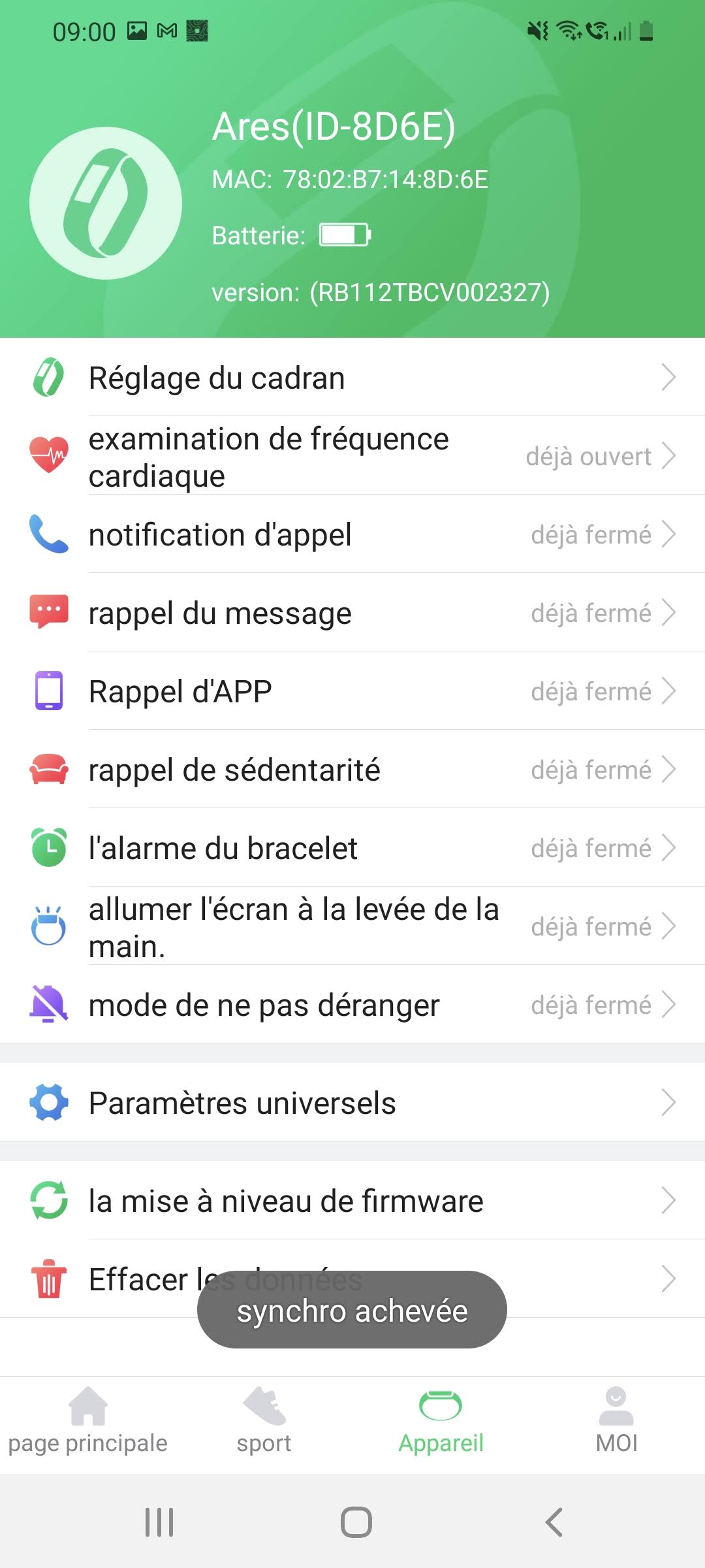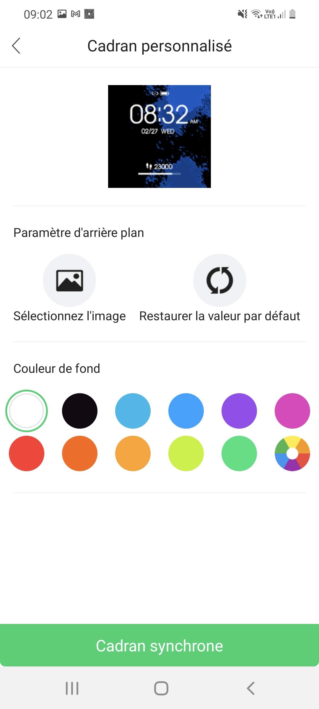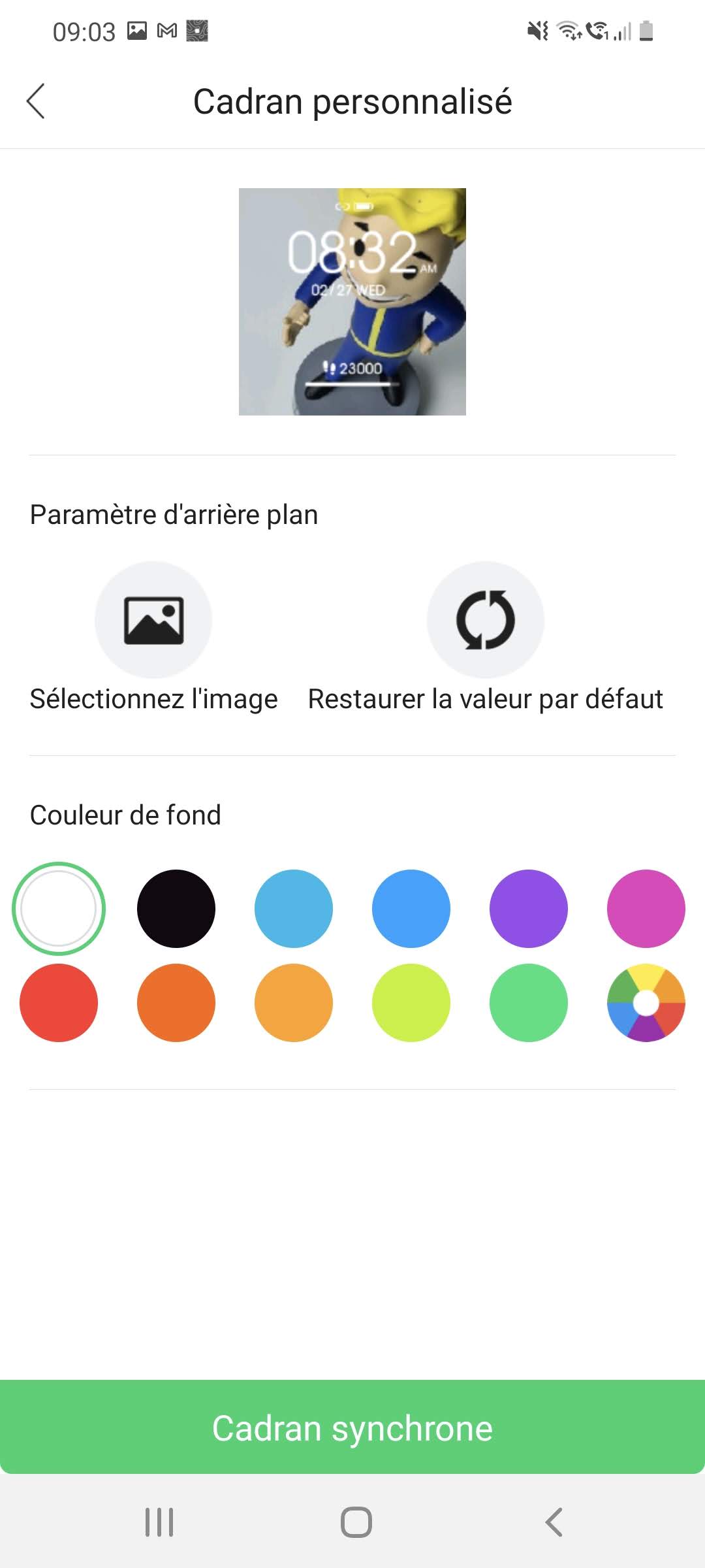 L'application GloryFit permet de synchroniser les données de plusieurs marques de montre, elle offre donc plus de fonctionnalités que ce qui est disponible sur la Zeblaze Ares. L'application Gloryfit est disponible dans de nombreuses langues mais je vois bien que les développeurs de l'application ont utilisé de la traduction automatique. Certaines traductions sont vraiment mauvaises mais le reste de l'application est bien conçue et ces mauvaises traductions ne devraient pas vous empêcher d'utiliser l'application à son plein potentiel.Je n'ai pas rencontré de problème pour synchronliser la Zeblaze Ares avec l'application Gloryfit et la première configuration n'a posé aucun problème. Gloryfit propose de nombreux paramètres pour configurer la montre, vous pouvez personnaliser l'écran avec une vingtaine d'écrans prédéfinis mais vous pouvez aussi créer votre propre écran avec une photo de votre choix. Vous pouvez également configurer comment vous voulez recevoir le notifications/message sur la montre, définir les plages de sommeil, configurer les vibrations et bien d'autres choses.