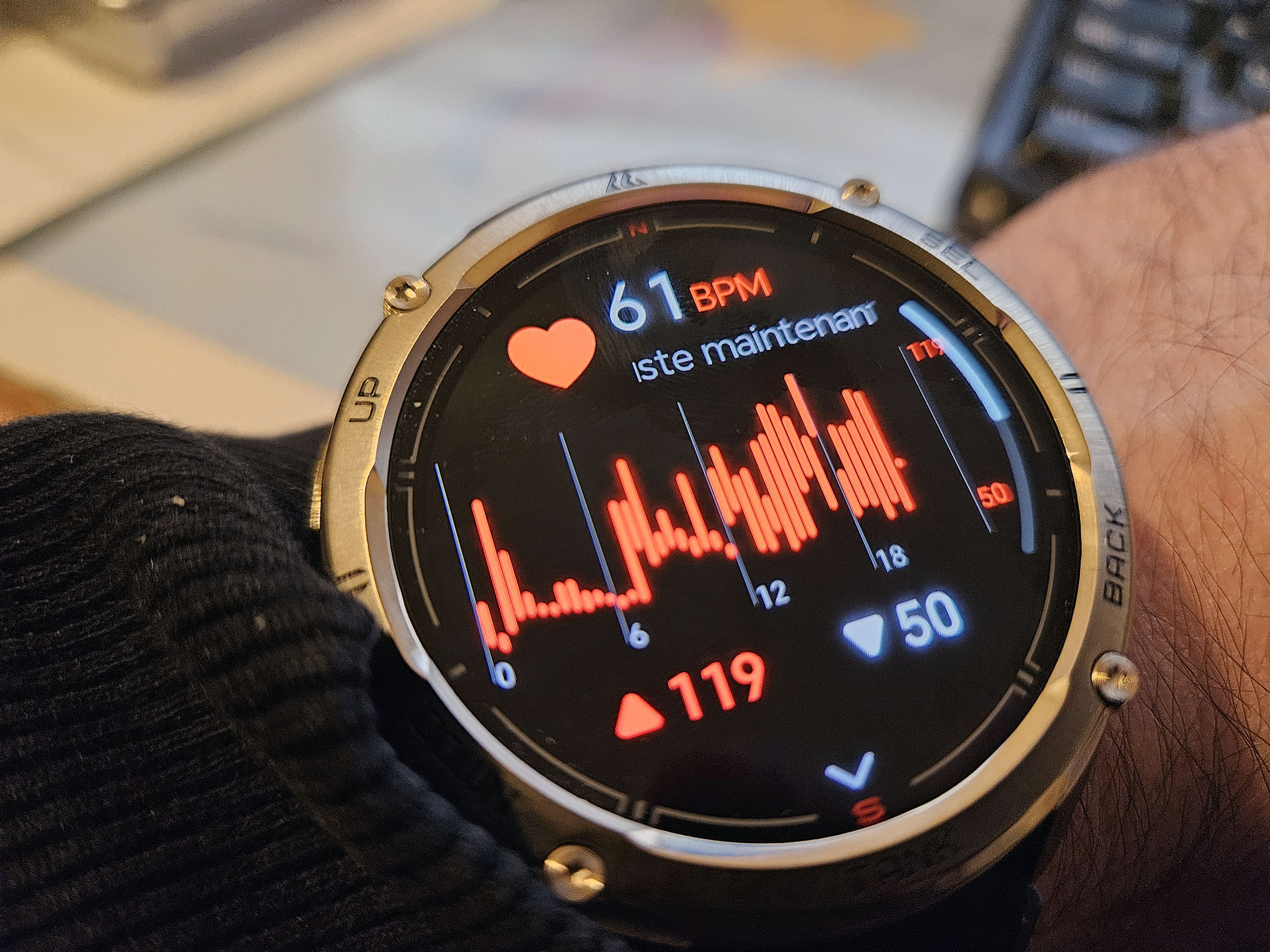 L'altitude est par contre assez fantaisiste parce que l'endroit où je vis se situe entre 50 et 75m d'altitude mais l'altitude affichée par la montre était supérieure à 100m ce qui est impossible.