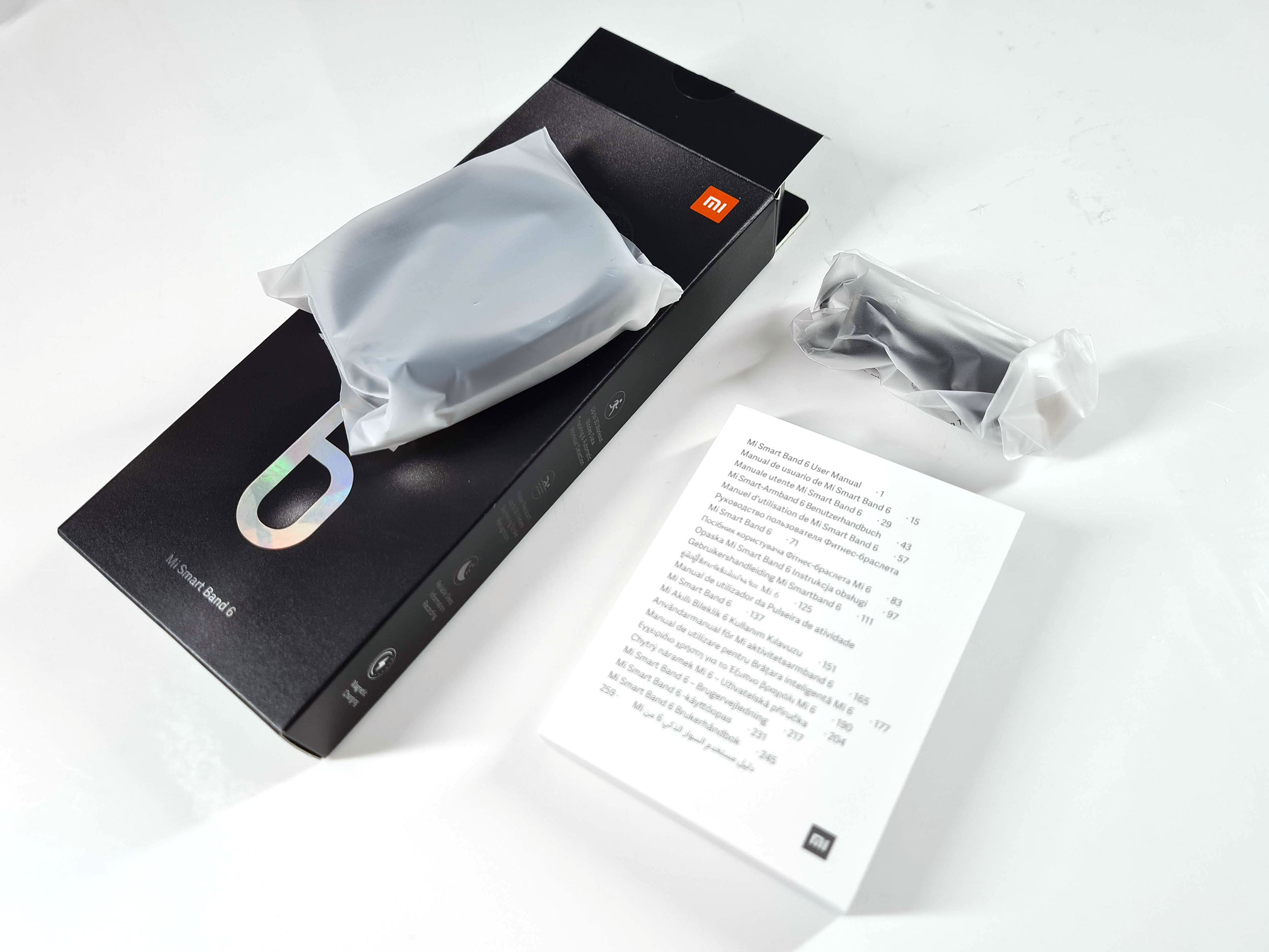 Si je compare les Mi Band que j'ai achetés, je ne vois pas de grandes différences dans le format du produit mais par contre le positionnement a changé. Entre la boite de la Mi Band 3 et la boite de la Mi Band 6, il y a clairement une évolution vers un produit plus premium même si le produit n'a pas fondamentalement changé. La boite contient la montre, un bracelet (compatible avec les autres Mi Band), un gros manuel d'utilisation et un chargeur magnétique (le même que pour la Mi Band 5)