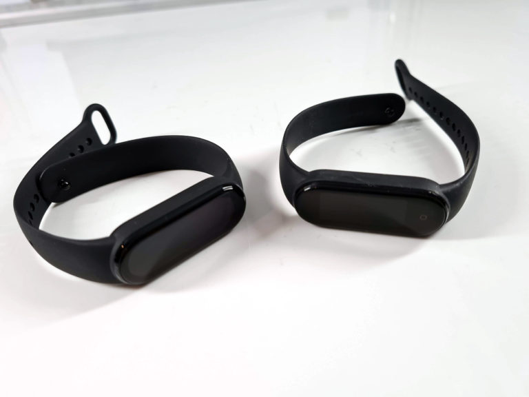 Qu'est-ce qui change par rapport à la Mi Band 5 ? Voici les deux produits cote à cote, en dehors du petit symbole sur l'écran de la Mi Band 5 (à droite), il n'y a pratiquement aucune différence.