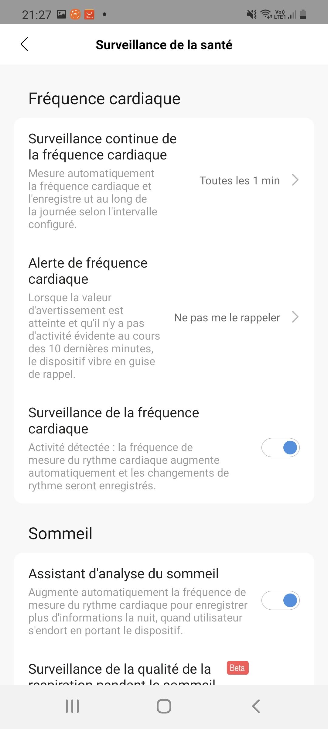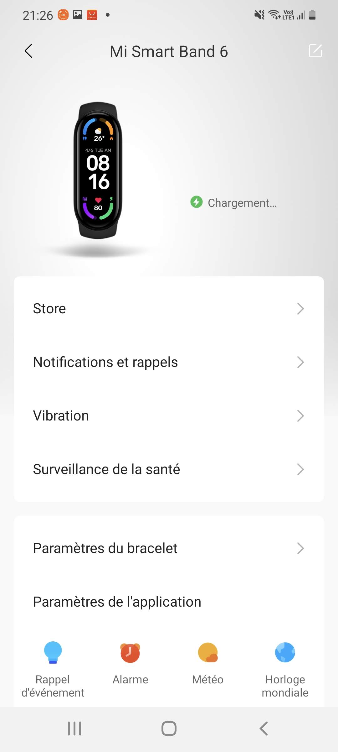 Pour pouvoir configurer la Mi Band 6, vous devez télécharger l'application gratuite MiFit. Cette application est développée par Xiaomi, il n'y a donc aucun problème de compatibilité et l'application permet d'exploiter le potentiel de la Mi Band. La configuration initiale peut soit se faire par détection de la Mi Band via Bluetooth soit par l'utilisation d'un code QR. Je n'ai rencontré aucun problème pour la configuration de la montre, j'ai d'ailleurs passé plus de temps à choisir mes paramètres qu'à connecter la montre à mon téléphone.Les possibilités de personnalisation ont bien évolué depuis la Mi Band 3 et même si la montre n'a pas beaucoup évolué au niveau de son format, l'interface est désormais complètement personnalisable.