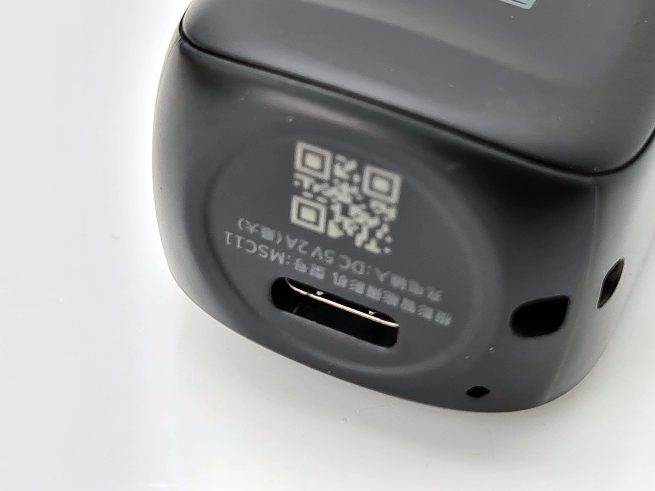 Dans la partie inférieure de l'appareil, vous trouverez un port USB de type C (5V 2A) pour recharger l'appareil. Il n'y a pas de chargeur dans la boîte, il y a juste un câble que vous pouvez utiliser avec n'importe quel chargeur de téléphone.