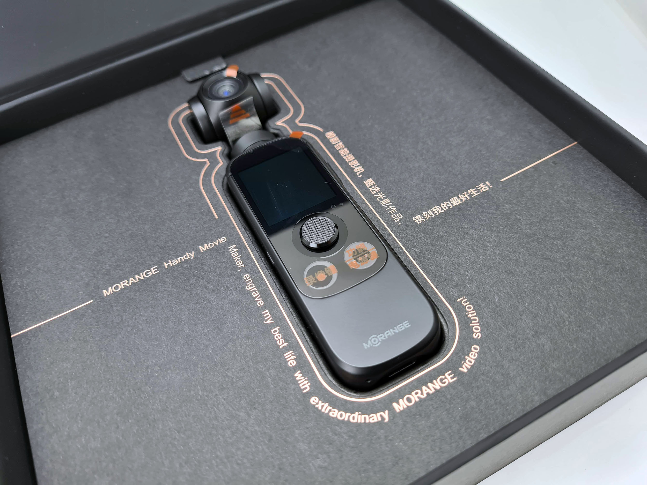Le corps principal du Morange est constitué d'un petit écran tactile (1,4") qui permet d'utiliser l'appareil photo de manière autonome sans smartphone ni application. Un joystick permet de contrôler la caméra sur les 3 axes. Sous le joystick, il y a un bouton pour démarrer l'enregistrement et un autre pour interagir avec les menus et les différents modes de la caméra.