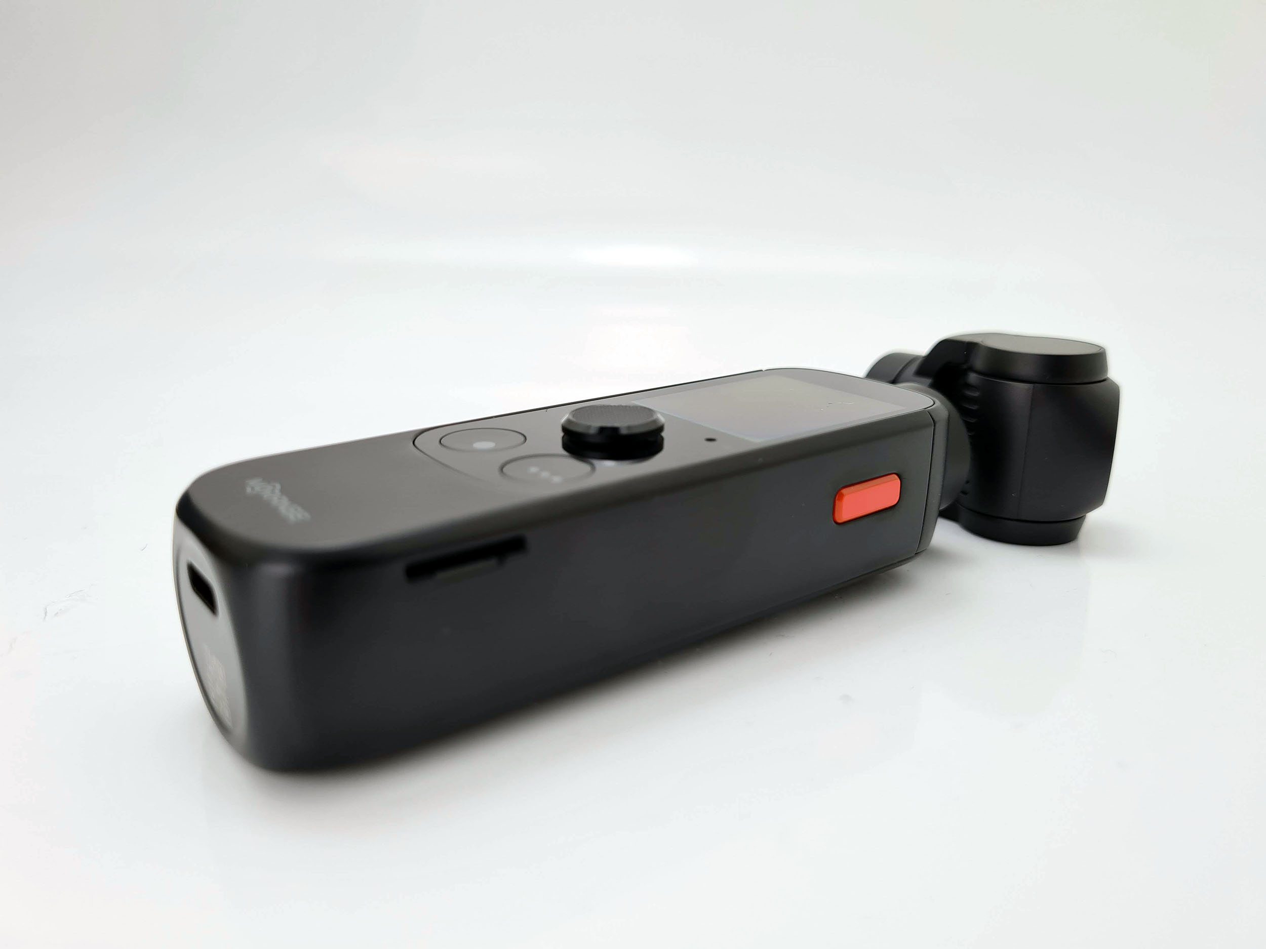 Sur le côté droit, vous trouverez un bouton de déclenchement pour démarrer une vidéo et une ouverture pour faire glisser une carte mémoire micro SD. Sur le côté gauche, vous pouvez faire glisser un petit couvercle pour insérer l'adaptateur USB qui vous permettra de fixer l'appareil photo à un téléphone. Cet adaptateur est compatible avec la norme USB 3 afin d'assurer une bonne vitesse de transfert avec le téléphone.