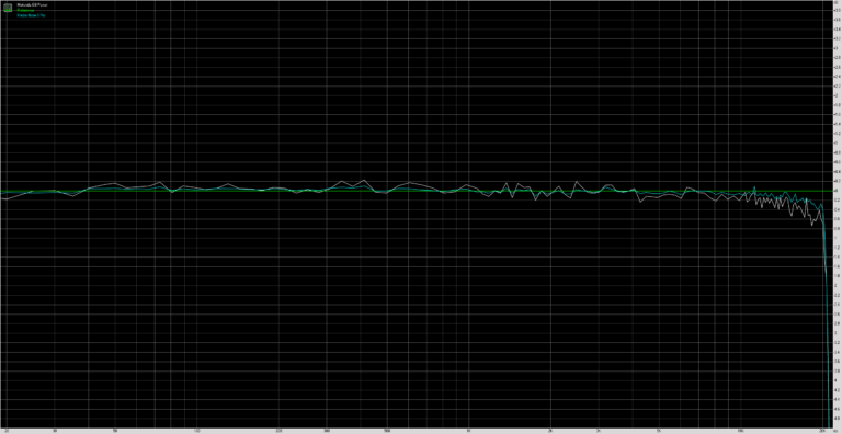 Ce test vise à tester la capacité de l’appareil à reproduire correctement toutes les fréquences. La ligne blanche au milieu du graphique est la situation idéale et les autres couleurs proviennent des tests sur différents téléphones. Une déviation de la ligne de référence indique un écart par rapport à la situation idéale. Pour voir un bon son sur toutes les fréquences il faut donc s’approcher le plus possible de la ligne de référence.