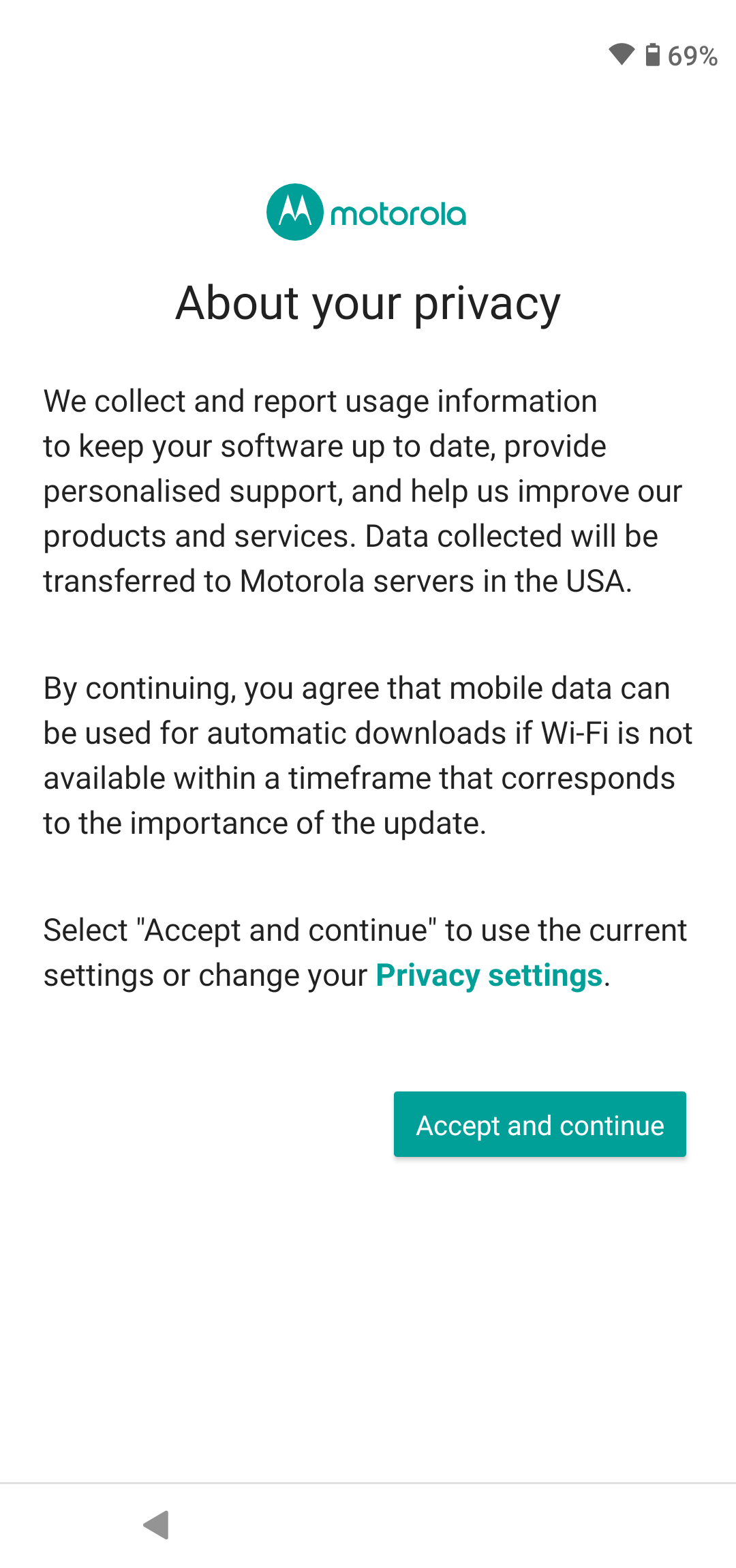 Le Motorola G8 Power tourne sous une version "pure" d'Android, la procédure de démarrage est donc très standardisée, Motorla a adapté le design de quelques écrans sans réellement changer fondamentalement le processus. A la fin Motorola va vous demander d'adhérer à leur privacy policy et va vous inciter à partager vos données avec eux mais contrairement aux grands constructeurs, ils n'offrent rien en retour (en gros, c'est juste pour utiliser vos données).Finition