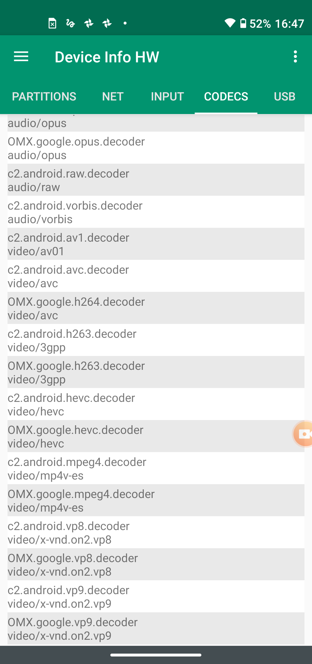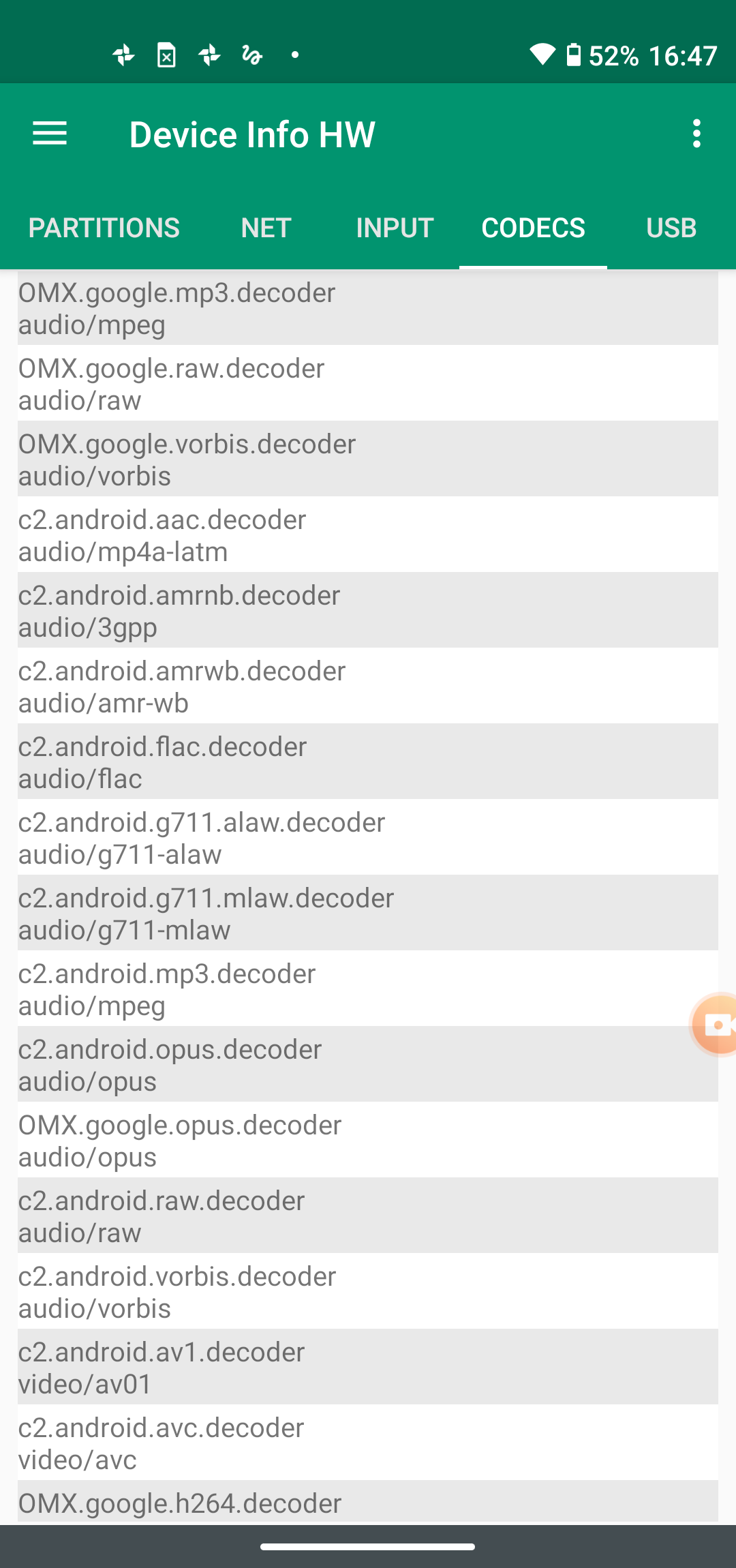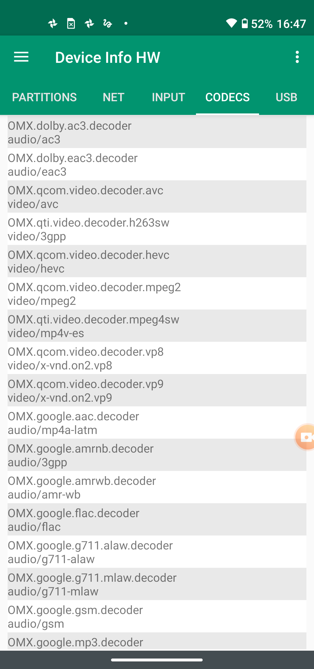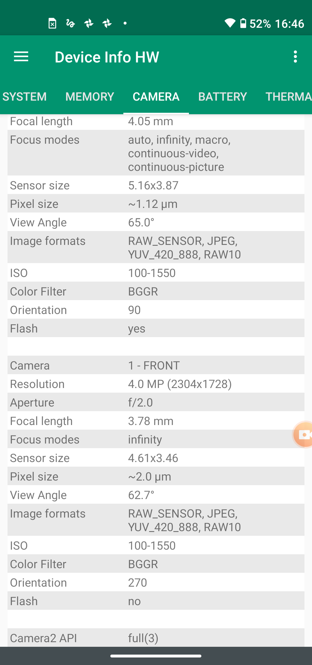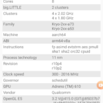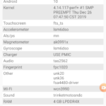 Les informations ci-dessous proviennent de l'application Device Info HW. L'application fournit des informations techniques détaillées sur le téléphone testé.