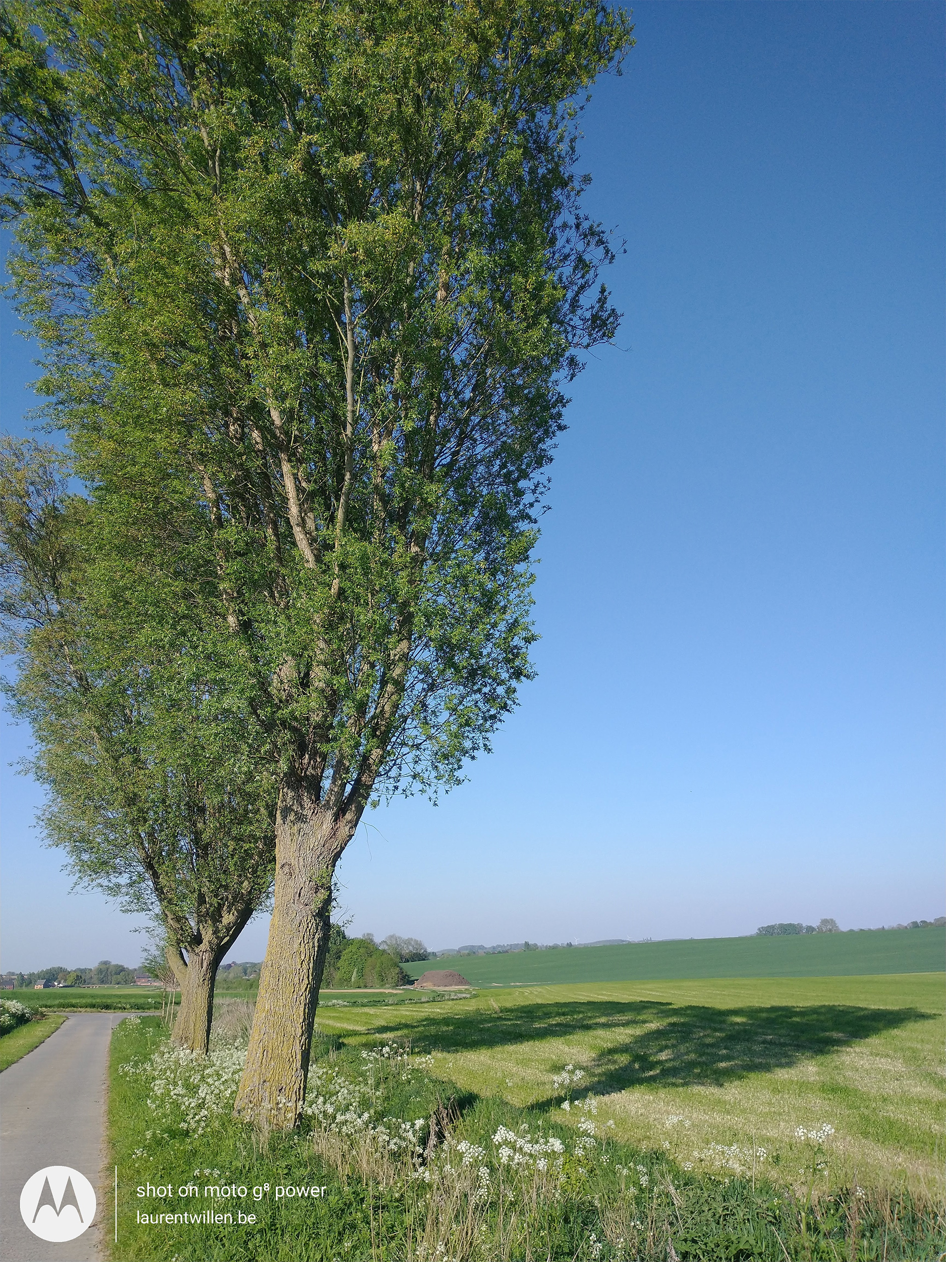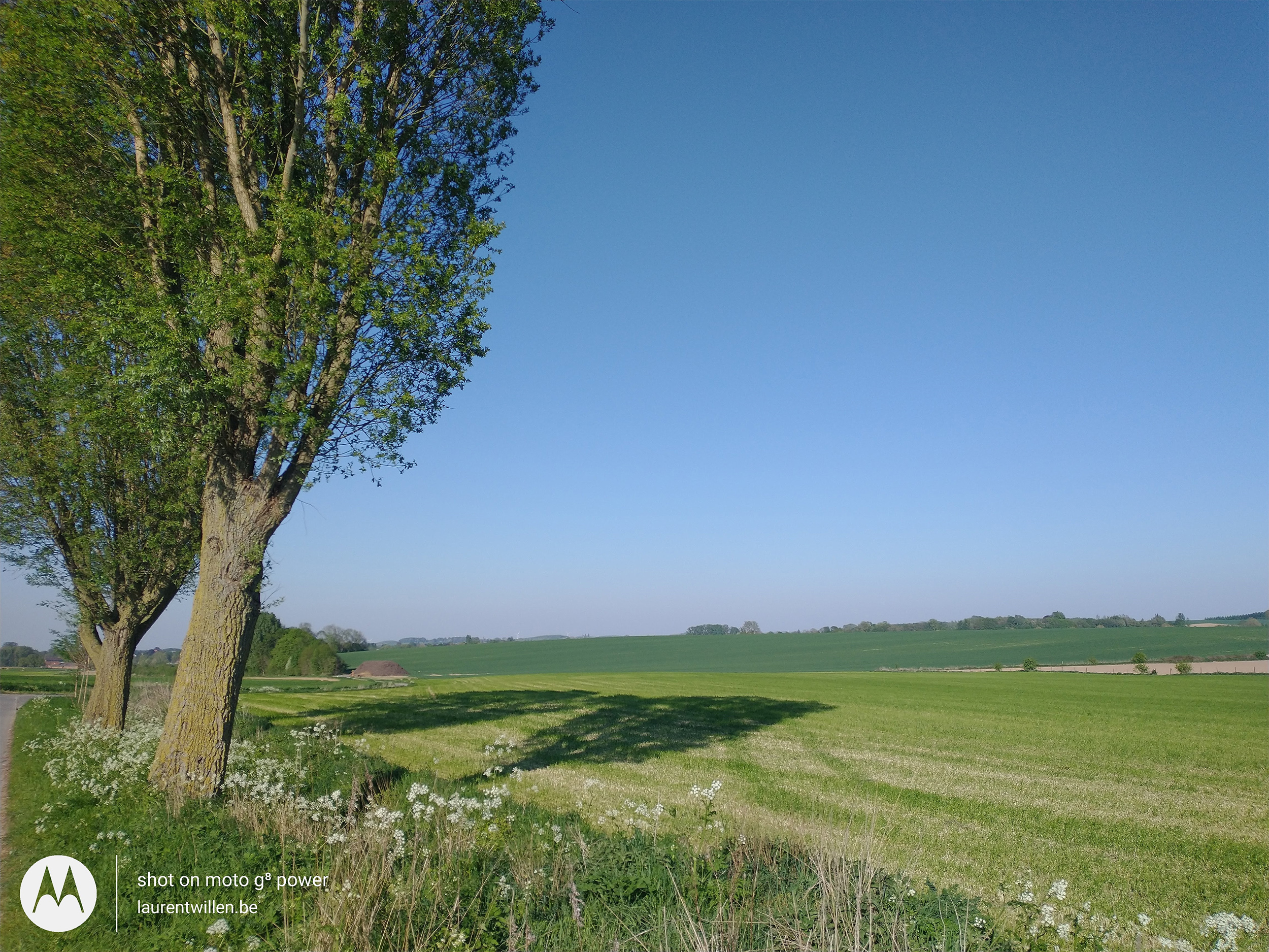 La photo a été prise en fin d'après-midi, les couleurs doivent donc être plus chaudes, ce n'est pas visible sur la photo du Motorola. La netteté est également bien plus prononcée sur le Redmi Note 9s, cela se voit au niveau des détails des feuilles et de l'herbe en bas à gauche.