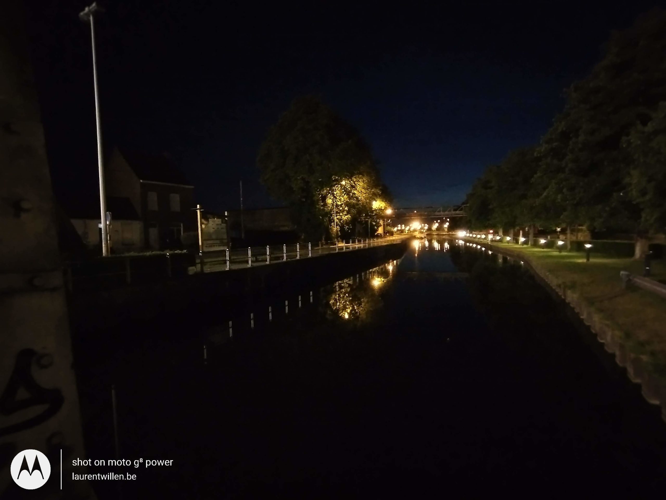 Le grand angle produit de meilleures photos que le capteur principal, j'avais déjà constaté cette particularité avec les photos de jour. La photo est légèrement floue car le Motorola ne combine pas plusieurs images pour compenser le mouvement. Je pense qu'il serait possible d'obtenir une photo correcte avec le grand angle en s'appuyant sur quelque chose pour éviter de bouger mais même avec ce grand angle, ce Motorola n'entrera pas dans le classement des meilleurs smartphones pour la photo nocturne