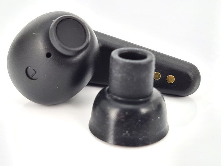 Les écouteurs sont très anguleux et leur petit led vert va permettre de les distinguer d'assez loin, je ne connais pas d'autres marques utilisant cette couleur pour ses écouteurs. Les LEDs vertes peuvent parfois devenir blanche pour indiquer que les écouteurs sont en attente d'une connexion. Les parties latérales des écouteurs sont sensibles au toucher et permette de controler les écouteurs avec les fonctionnalités suivantes: