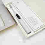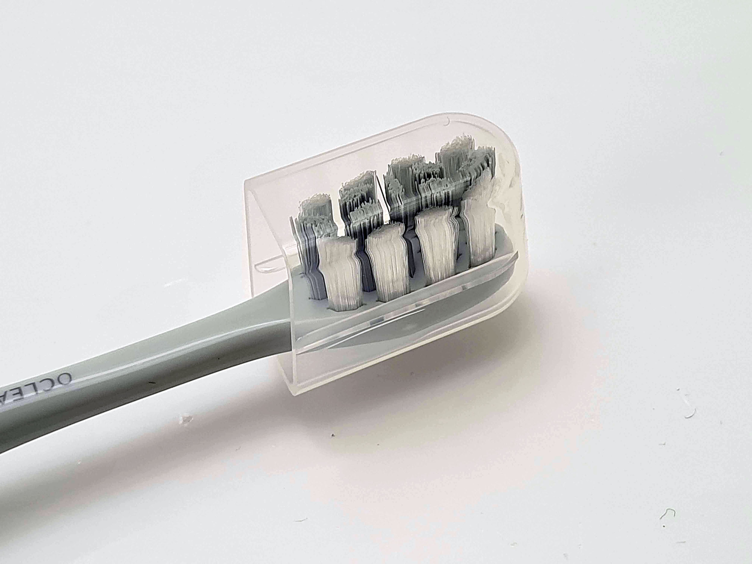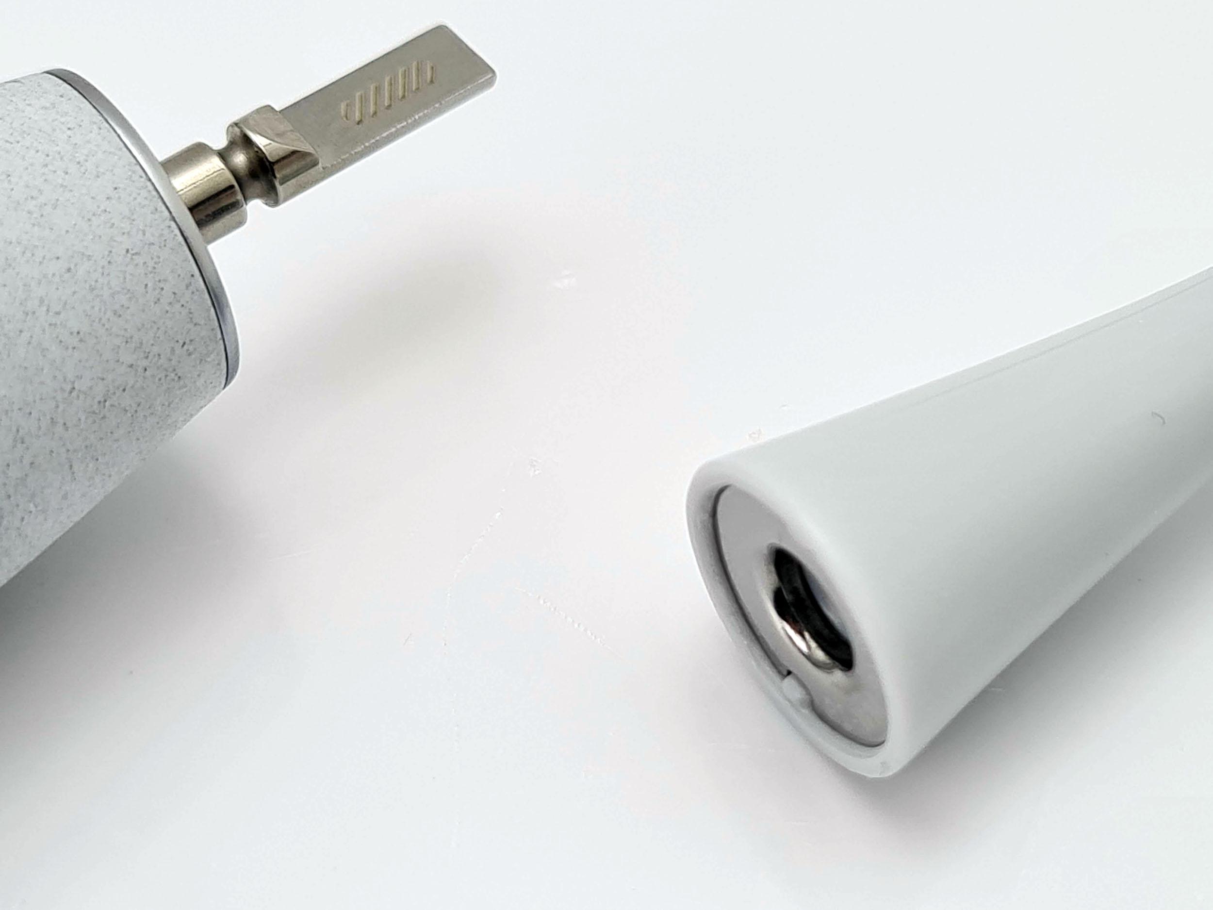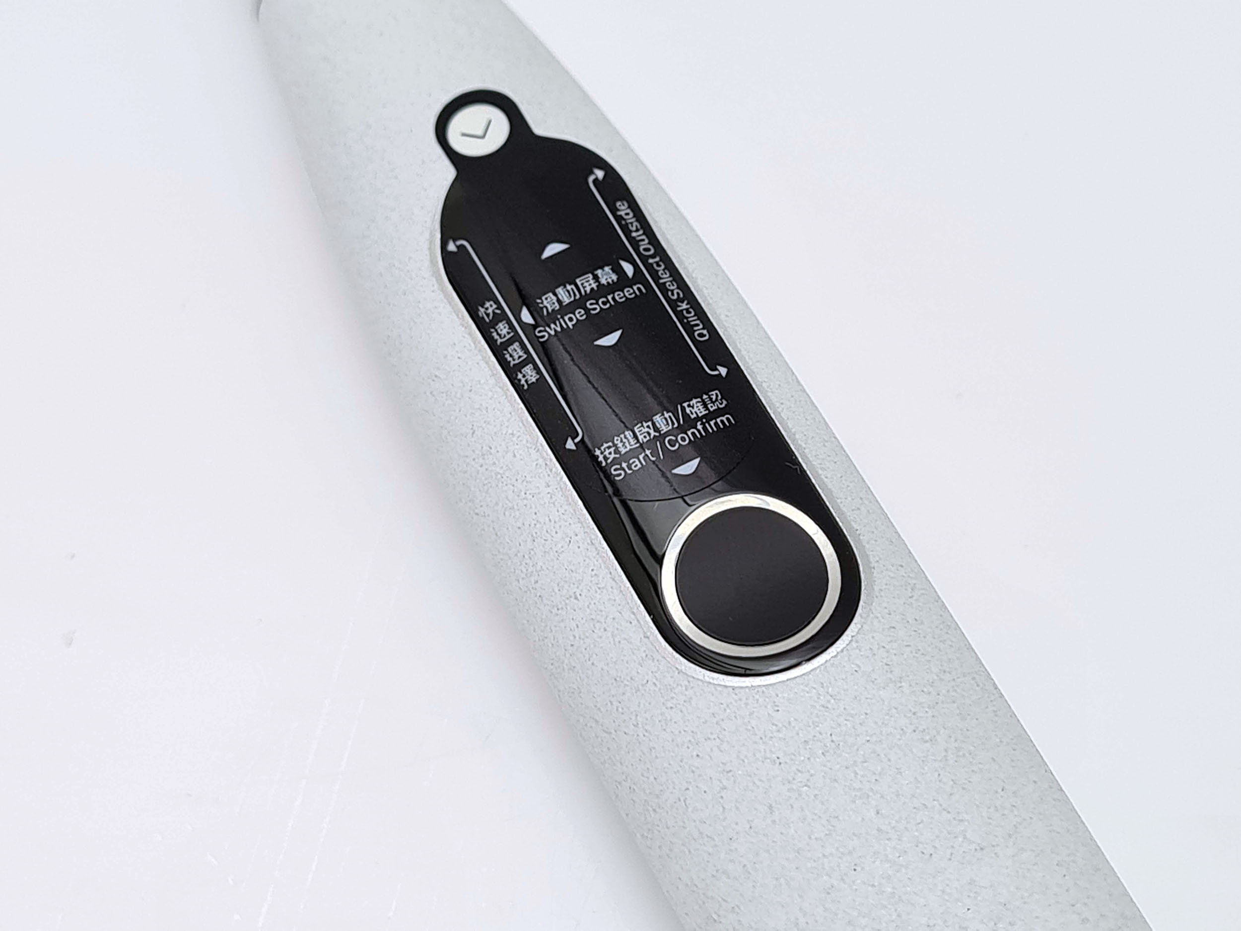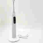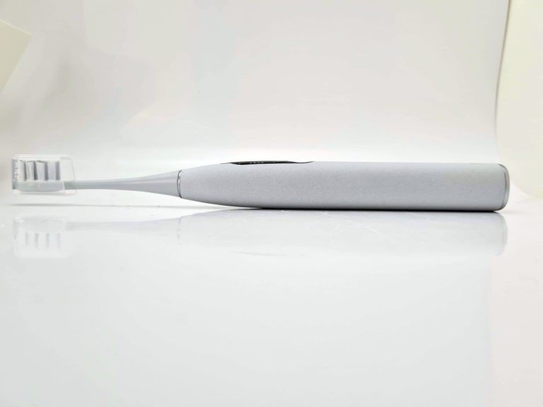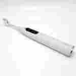 La brosse à dents électrique Oclean X Pro Elite est très grande, elle mesure 25 cm, il y a donc largement de la place pour qu'une main puisse la tenir et interagir avec l'écran tactile. Comme toutes les brosses à dents de ce type, la tête avec la brosse est détachable et peut être remplacée lorsqu'elle est usée. Vous pouvez acheter de nouvelles têtes pour 13€ sur le site d'Oclean (13€ pour 2).