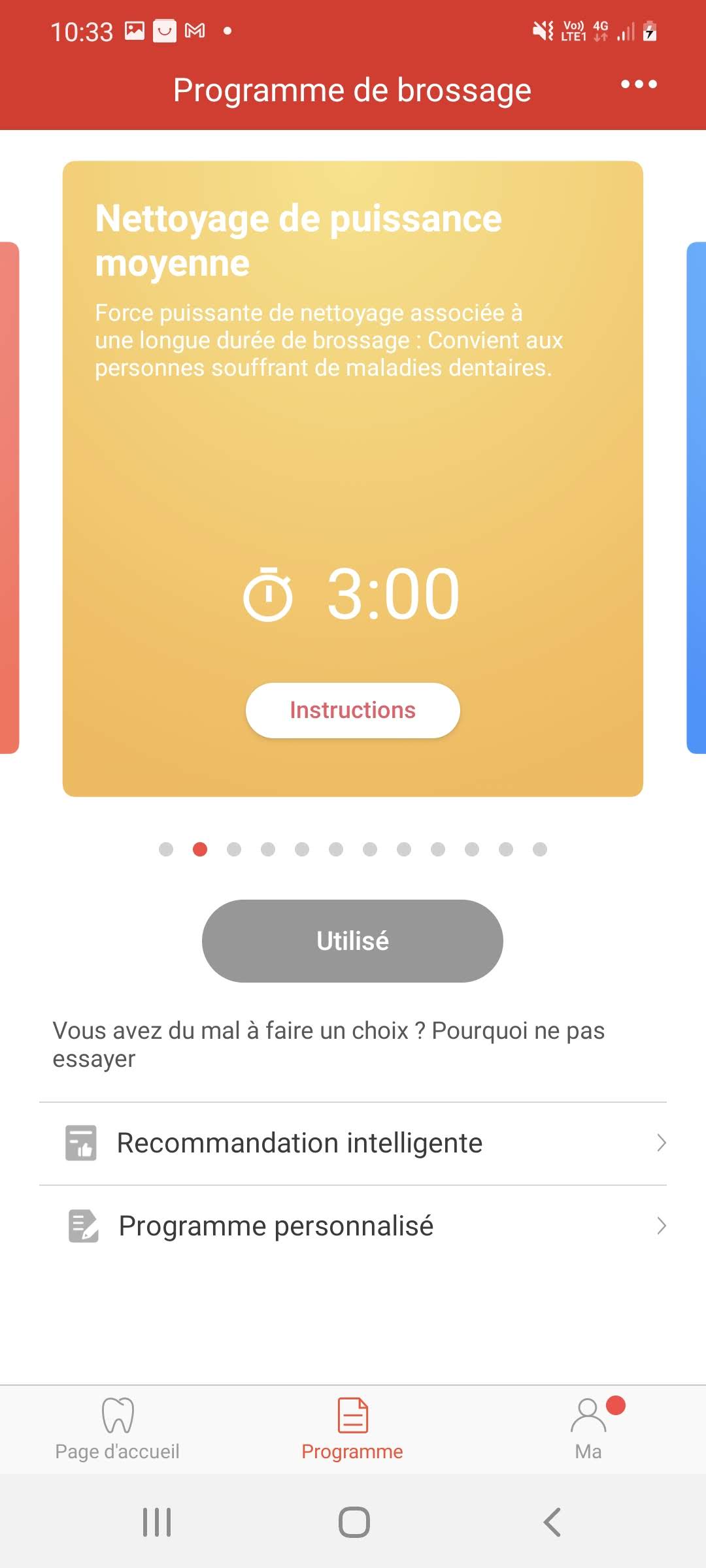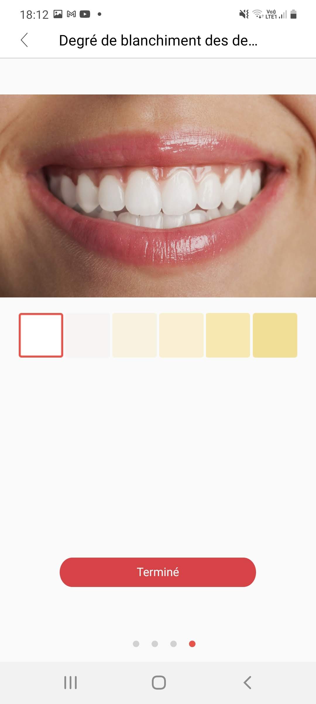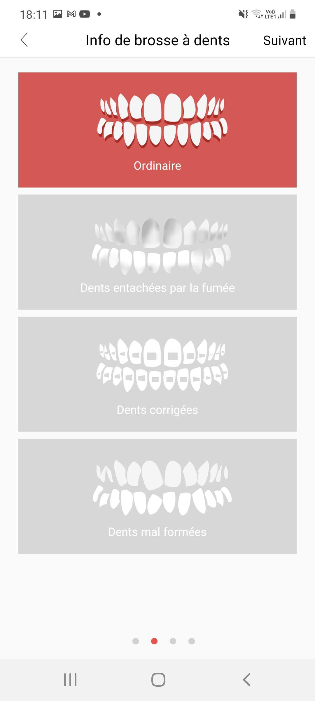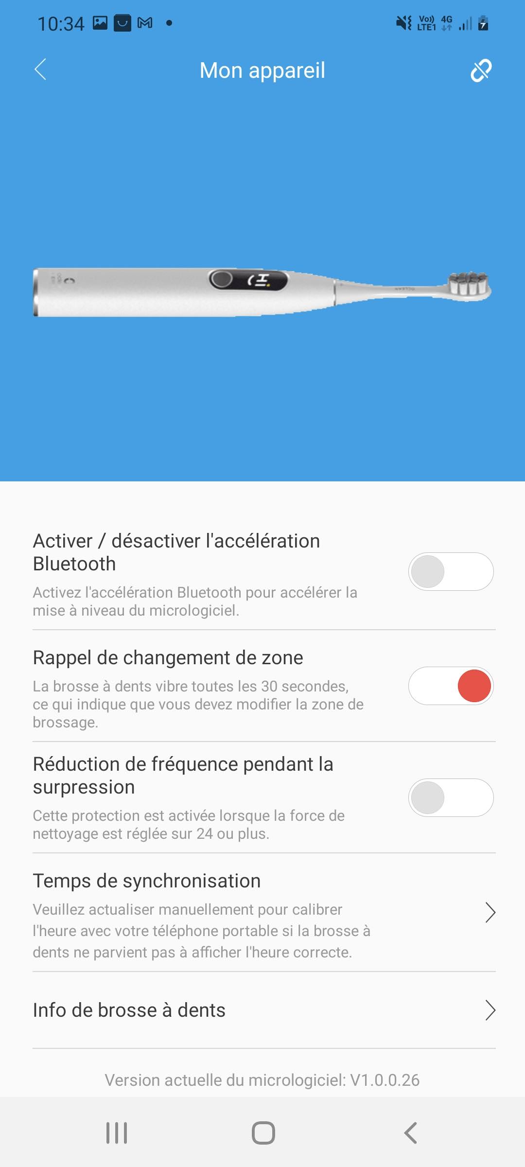 Ce que j'ai également apprécié dans l'application c'est de pouvoir configurer la brosse sur le téléphone et ensuite pousser la configuration sur la brosse. L'écran tactile de la brosse fonctionne correctement mais l'application est sans doute plus pratique à utiliser. Vous choisissez ainsi la configuration de votre choix, vous la synchronisez avec la brosse à dents et vous pouvez l'utiliser avec la nouvelle configuration.