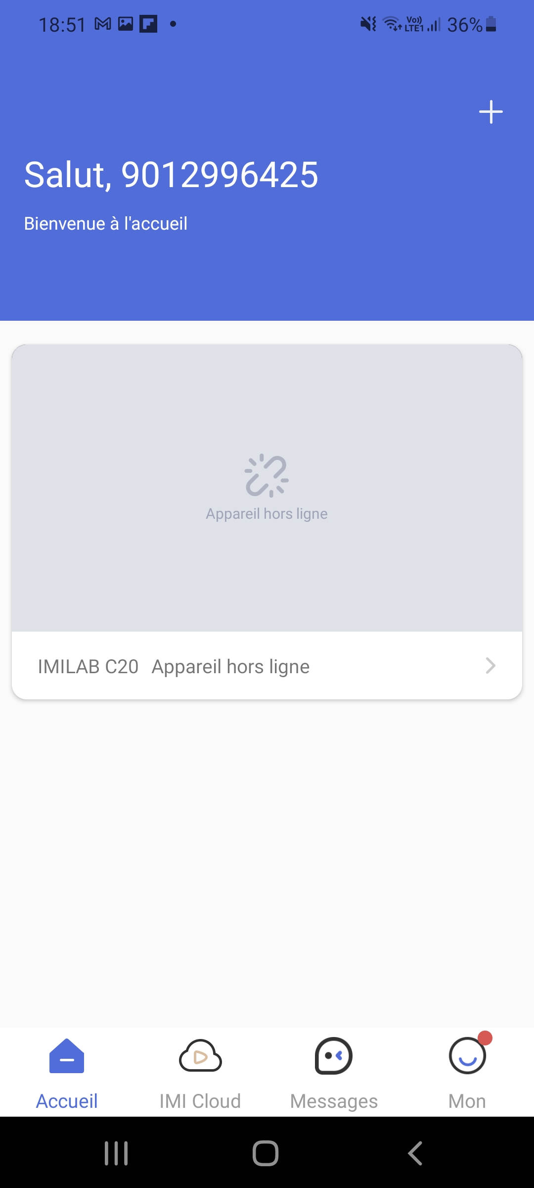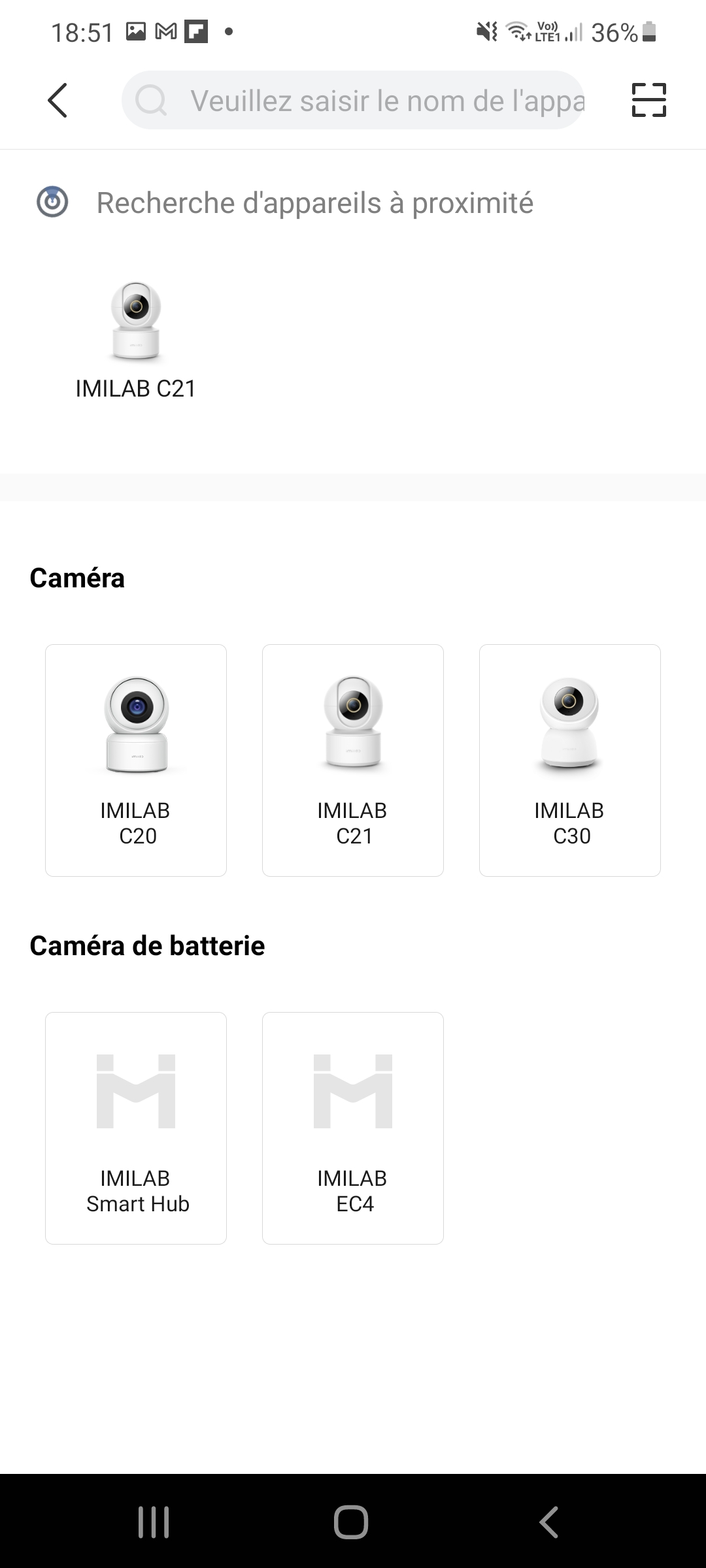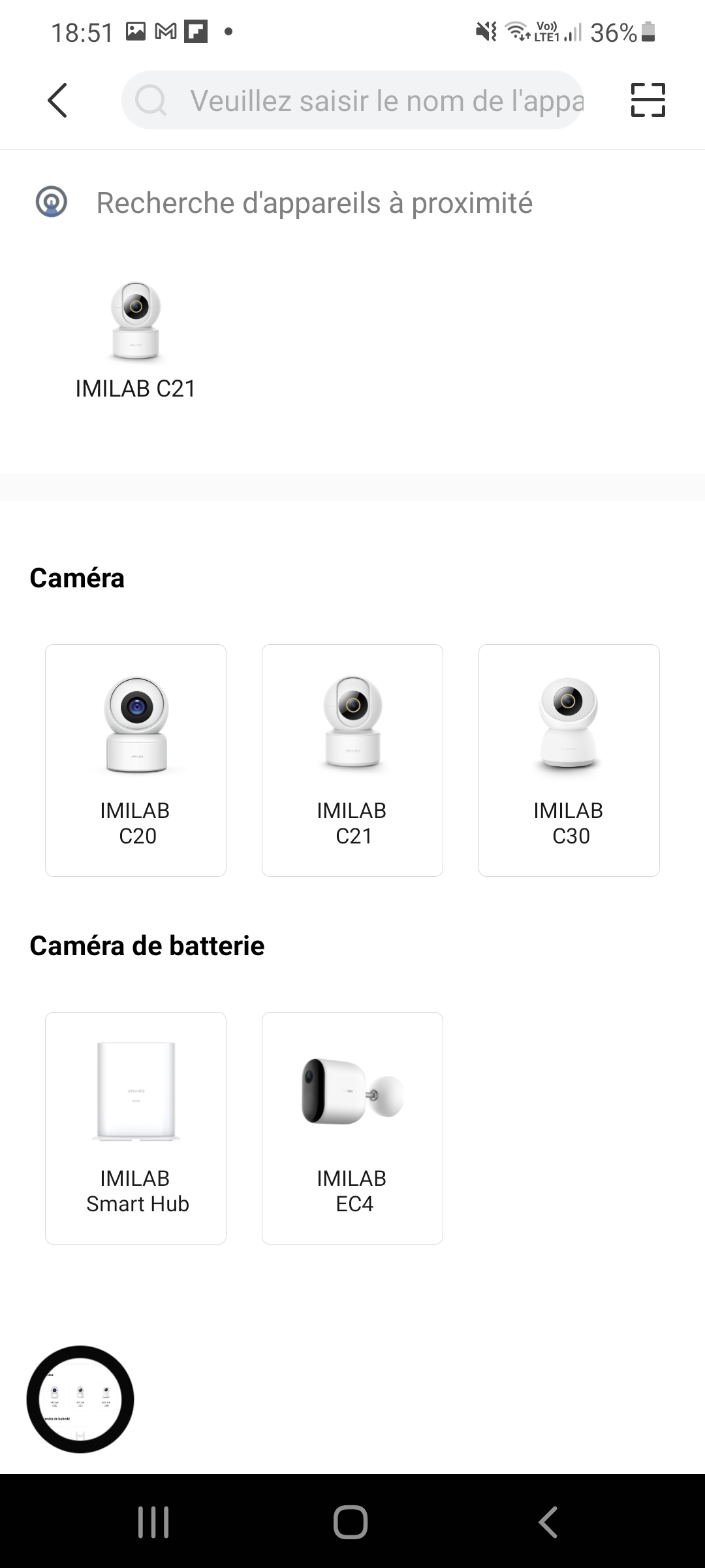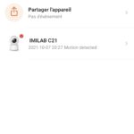 2. Association de la caméra: il faut appuyer sur le bouton + en haut à droite de l'écran et choisir la Imilab C21 parmi les caméras disponibles.