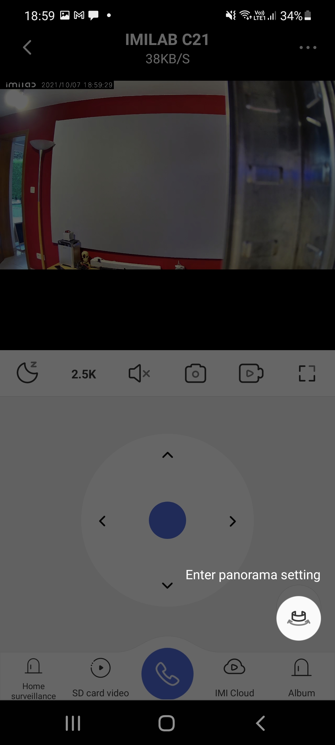 L'application Imilab Home est assez facile à utiliser, l'interface est suffisamment claire pour ne pas devoir chercher son chemin. Elle est par contre très mal traduite, il y a un mélange d'anglais, français et chinois. C'est souvent le cas pour les produits chinois mais heureusement cela ne devrait pas vous empêcher de l'utiliser. L'application permet de contrôler la caméra en direct (avec une légère latence). Vous pouvez faire tourner la caméra, écouter le bruit dans la pièce, prendre des photos, faire des vidéos, consulter les alertes,... L'application va également envoyer des notifications vers votre téléphone en cas de détection de mouvement.