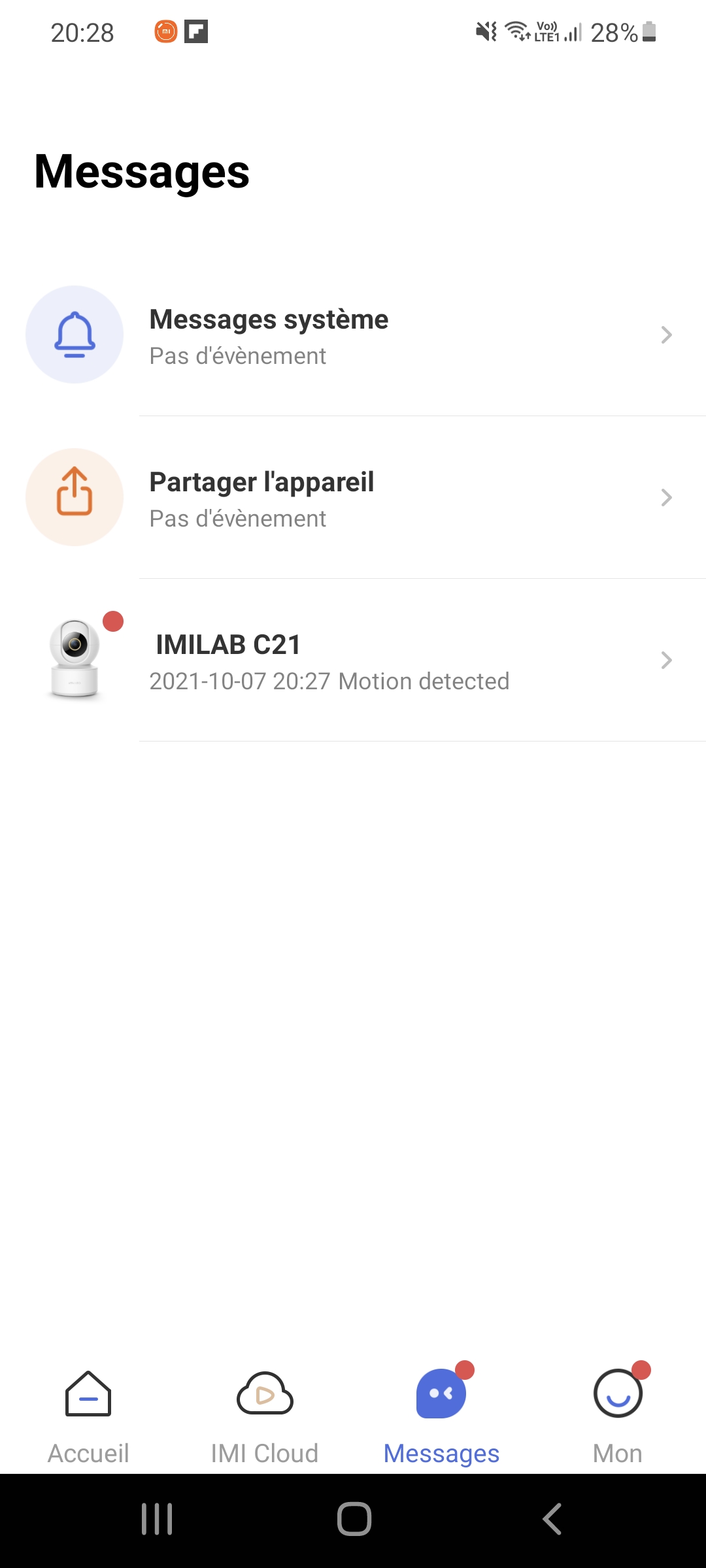 Le gros point faible de l'application est de ne pas pouvoir controler le flux de notification en fonction de l'heure du jour ou en fonction d'une zone dans la pièce. La caméra est soit active soit elle ne l'est pas, vous allez donc devoir la mettre en hibernation lorsque vous êtes chez vous sinon vous allez recevoir de très nombreuses alertes. J'aurais aimé pouvoir configurer les heures de surveillance ou encore définir une zone (ex: une porte, une fenêtre,...) qui doit détecter les mouvements. Ce genre de fonctionnalité existe sur la Blink XT2 mais cette caméra coute deux fois plus que la Imilab.