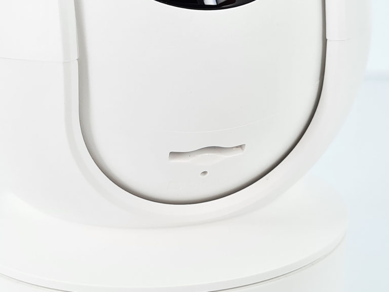 Si vous poussez l'oeil de la caméra vers le haut, vous trouverez la fente pour insérer une carte mini SD pour stocker vos vidéos. L'utilisation d'une carte SD n'est pas obligatoire, vous pouvez aussi opter pour un stockage sur le cloud proposé par Imilab. Imilab propose deux solutions de stockage dans le cloud: