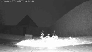 La vision nocturne est impressionnante car j'ai eu l'occasion de tester quelques caméras de ce type et l'éclairage infrarouge se limite souvent à quelques mètres. La Imilab permet de voir dans le noir au delà de 10 mètres voire même plus. Sur la photo on peut voir la fin de la haie qui se situe à environ 15 mètres de la caméra, on aperçoit également la forme du toit de la maison voisine qui est à plus de 20m.