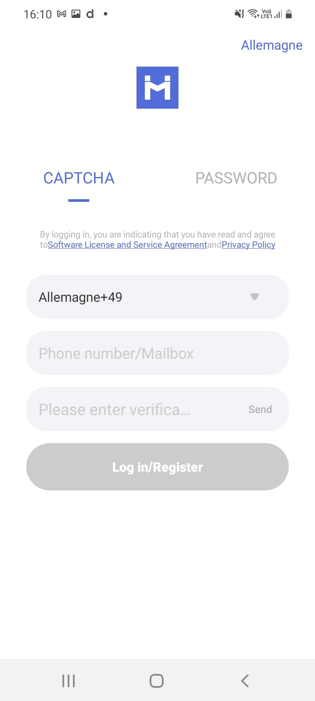 Pour associer votre caméra à l'application, vous devez d'abord choisir votre pays, cela ne présente pas de grosses difficultés mais le bouton pour sauvegarder votre choix n'est pas directement visible car le clavier le cache. Vous avez ensuite le choix entre une identification par SMS ou une identification par mail pour créer votre compte. J'ai essayé l'identification par SMS mais cela n'a jamais fonctionné, je n'ai jamais reçu le SMS. J'ai ensuite essayé l'identification par mail et là non plus cela n'a pas fonctionné du premier coup. J'ai reçu un premier code par mail qui ne fonctionnait pas dans l'application. J'ai ré-essayé plusieurs fois jusqu'à ce que le code reçu par mail fonctionne. Première étape passée.