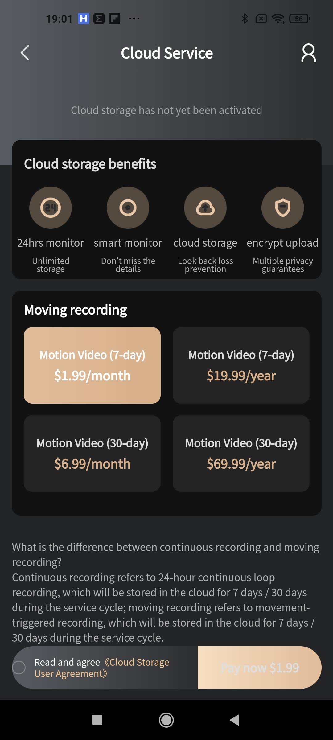 Les vidéos sont stockées sur votre téléphone mais si vous voulez enregistrer le flux vidéo 24h sur 24, vous devez souscrire à une offre cloud qui varie de 1.99$ par mois à 69.99$ par an. Cela peut paraitre démesuré par rapport au prix de la caméra mais ce sont des offres cloud illimitées, le prix est donc assez compétitif. J'ai testé les caméras Blink XT de chez Amazon, le stockage illimité est offert mais les caméras coutent beaucoup plus cher que cette Imilab C20. Tout est donc une question de calcul de votre budget.