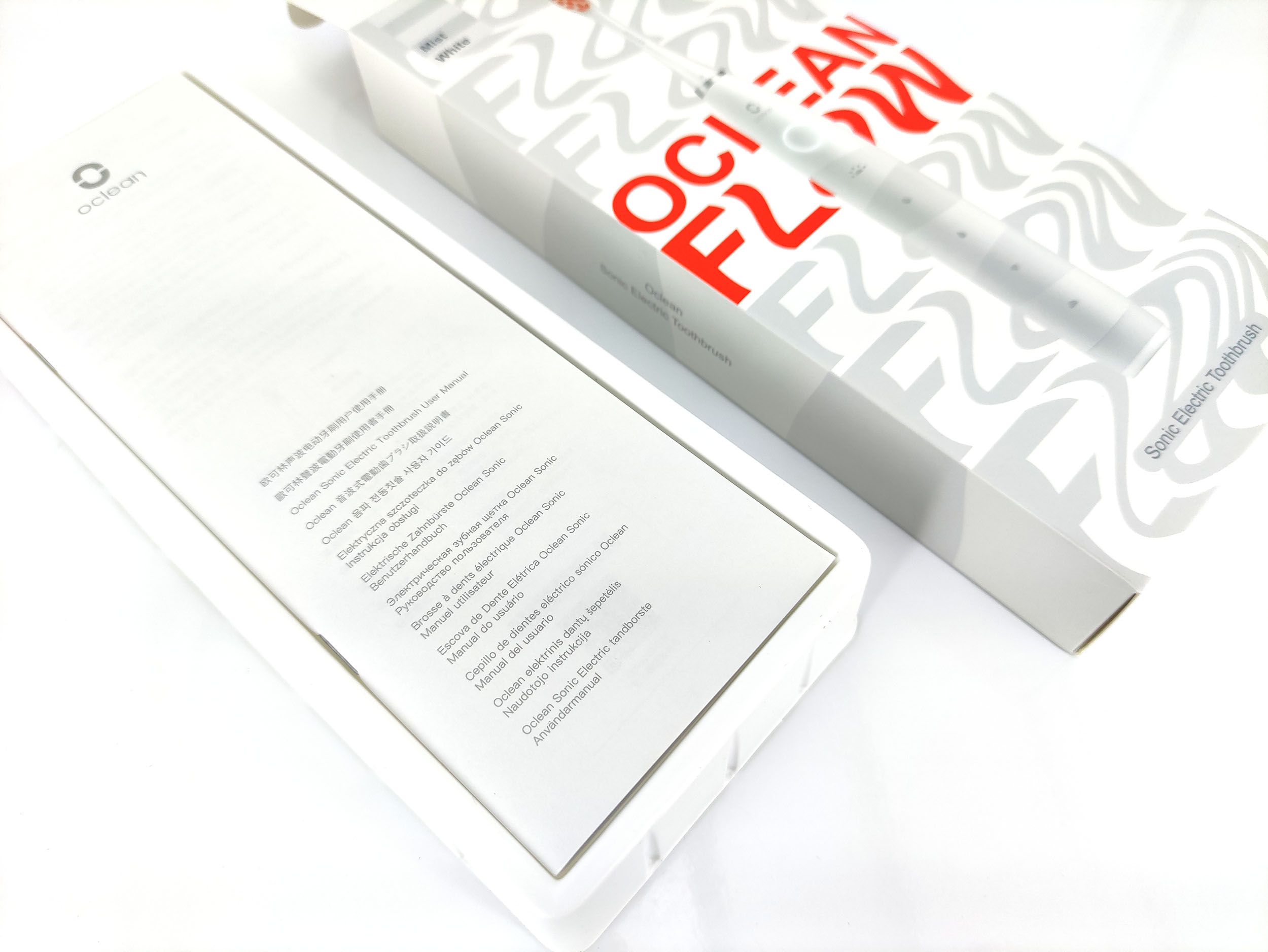 La boite de la Oclean Flow est radicalement différente de celle du modèle précédent, on se rend compte en un coup d'oeil qu'Oclean cible un public plus jeune. La boite contient le manque, une brosse, un cable USB-C et un manuel. Vous pouvez achetez d'autres brosses sur le site d'Oclean, je l'ai déjà fait pour le modèle précédent, j'ai été livré très rapidement.