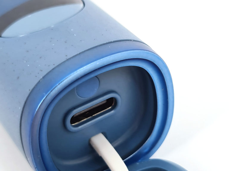 La recharge se fait par le dessous, il suffit de lui associer un cable USB C et un chargeur (non livré avec la boite).