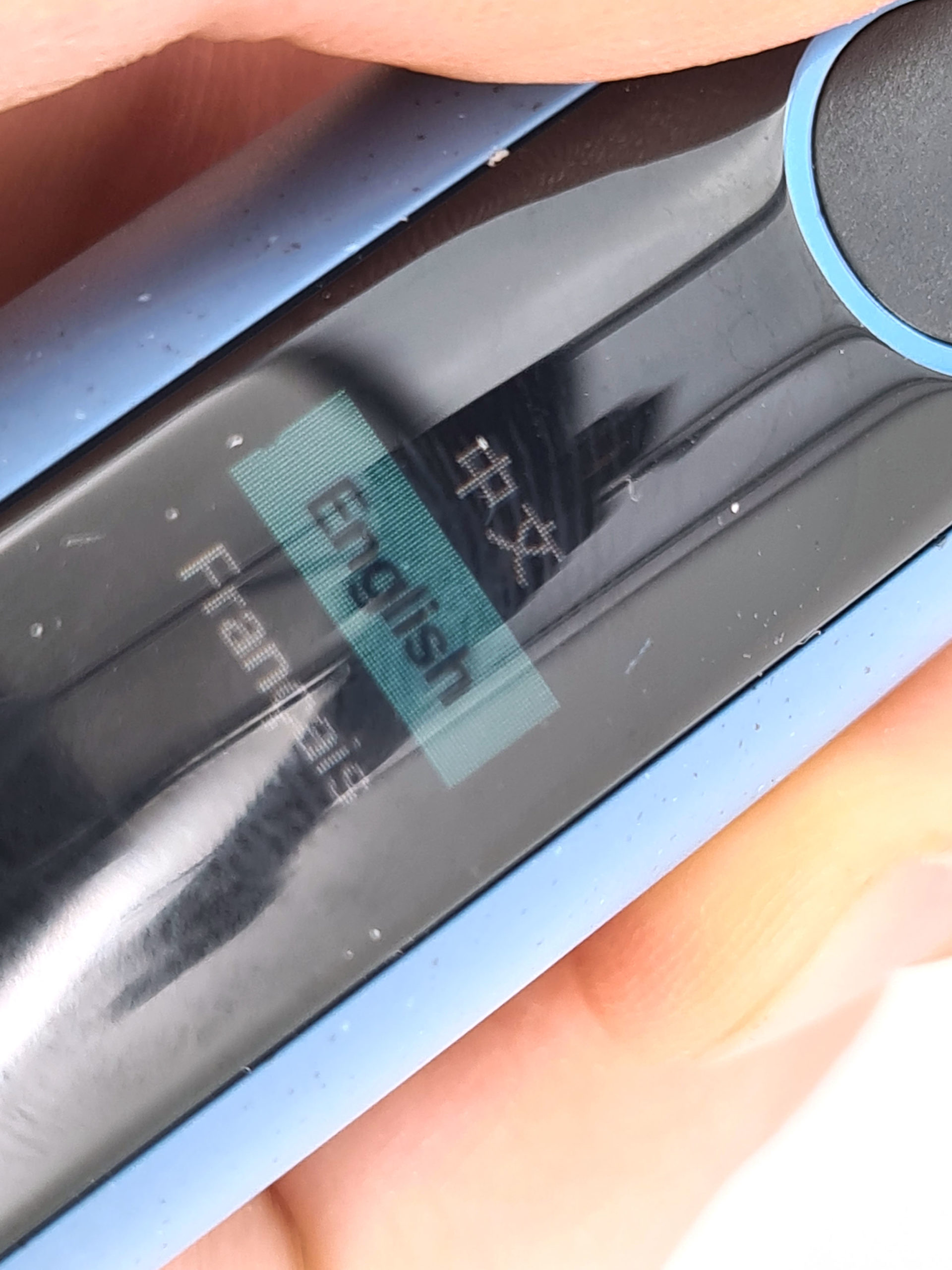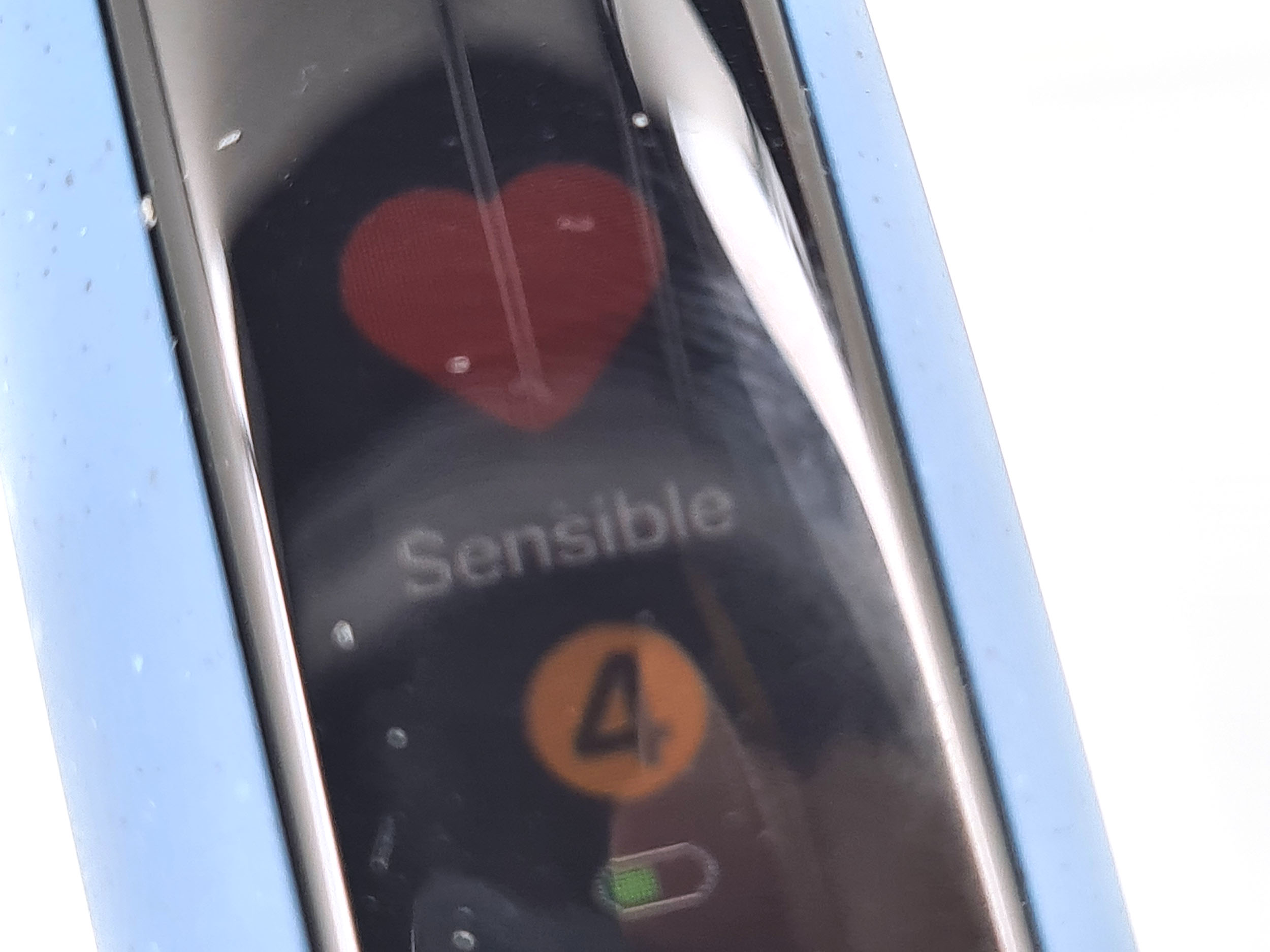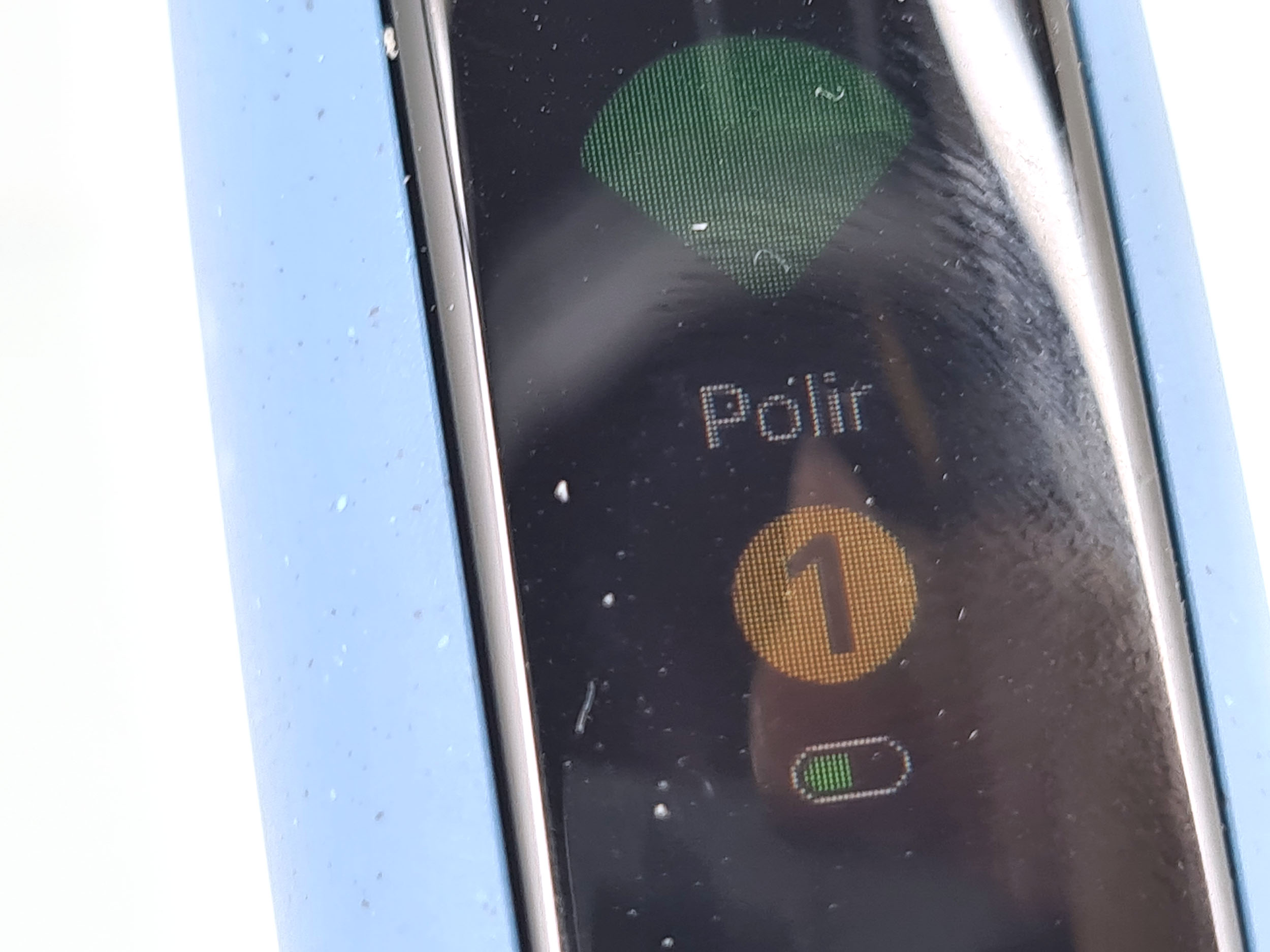 La position de l'écran est plus ou moins la même sur tous les modèles Oclean mais je me dis qu'ils devraient peut être envisager de le mettre de l'autre côté de la brosse car si vous vous brossez les dents devant un miroir, vous n'allez voir l'écran que lorsque vous brossez le bas des dents du haut et ce n'est donc pas pratique pour voir où vous en êtes.