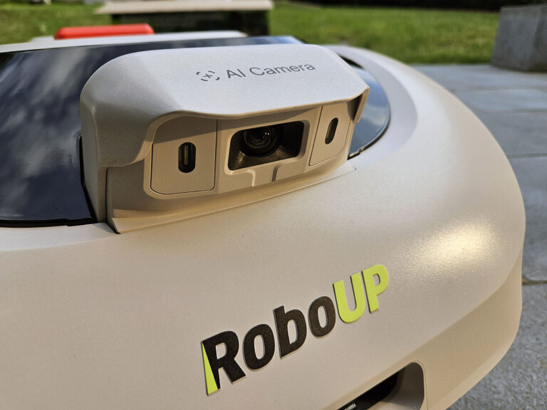 Le robotup raccoon se se positionne grâce à la caméra là où le modèle précédent utilisait une antenne gps. Je trouve que l’utilisation d’une antenne gps apporte plus de précision mais on se retrouve ici dans une gamme de prix d’un autre niveau. Le Raccoon parvient à trouver son chemin avec la caméra mais pour une surface identique il est moins rapide que le modèle précédent qui se basait sur le GPS. Si il ne détecte pas un sens à votre pelouse, il va la parcourir de façon un peu désordonnée plutôt que l’approche systématique en zigzag du premier modèle. C’est un choix fait par RobotUp et je pense qu’avec le retour de la communauté, c’est le genre de chose qui pourrait changé. L’avantage d’une tonte non organisée c’est qu’elle laisse moins de trace dans la pelouse mais l’inconvénient c’est que ça prend 2 fois plus de temps.
