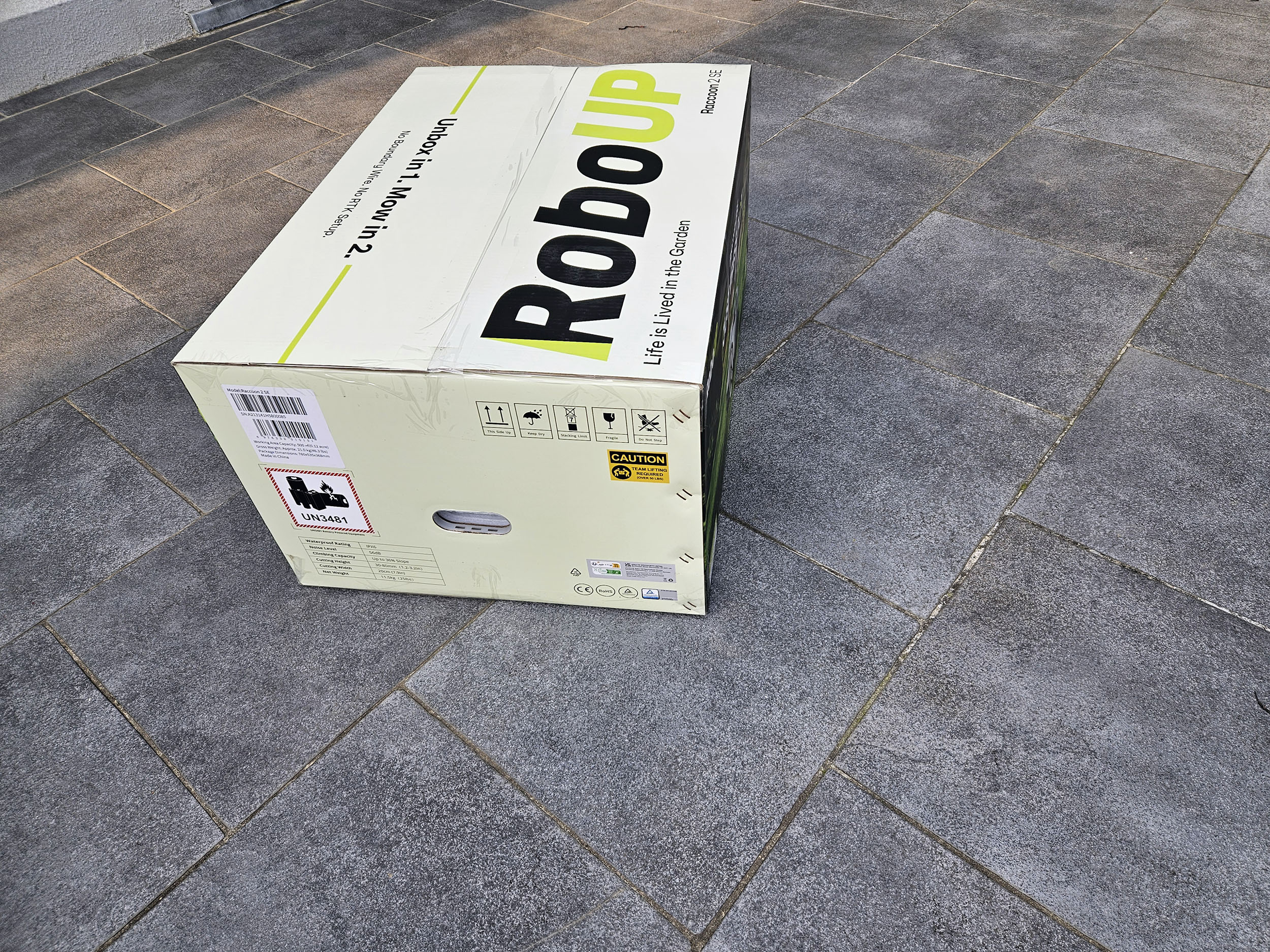 Je reçois des produits d'un peu partout pour mes tests, je reçois donc souvent des notifications des transporteurs m'indiquant une livraison sans réellement savoir de quoi il s'agit. J'avais reçu une notification pour ce produit qui indiquait des dimensions assez importantes et un poids de 25 kg. Comme je n'avais pas reçu de communication de la part de RobotUp, je n'avais pas fait le lien. J'attendais une armoire au même moment, les dimensions et le poids auraient pu correspondre. Si vous jetez un oeil à la photo de la boite, vous allez vite comprendre pourquoi j'aurais pu confondre les deux. La boite est très imposante.