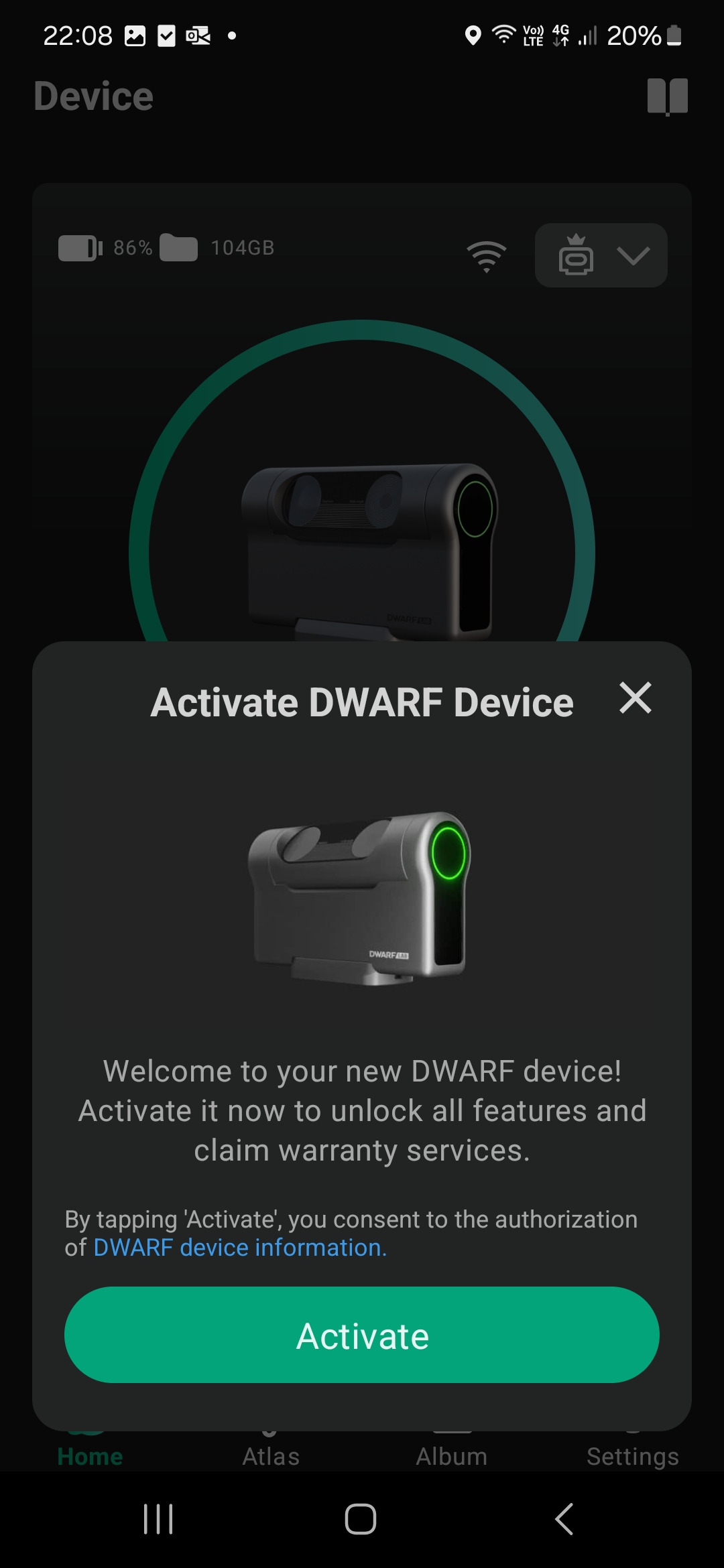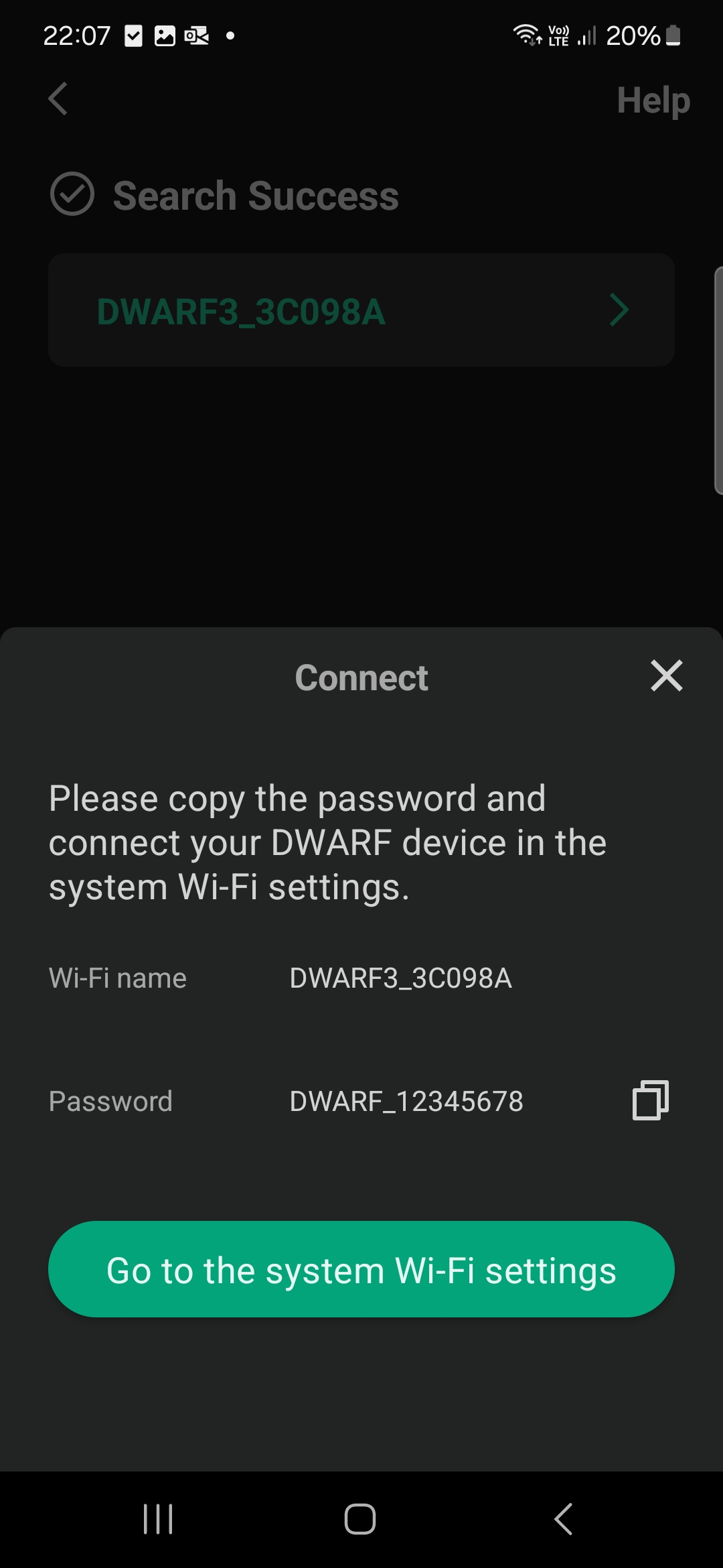 Le Dwarf 3 nécessite l’utilisation d’un smartphone (iOS ou Android). Lors de mes essais avec le Dwarf 2, l’application Android m’avait posé quelques difficultés, notamment pour la calibration. Le Dwarf 3 s’accompagne d’une nouvelle version de l’application, que j’ai pu tester en avant-première.L’association entre l’application et le télescope est rapide. Le Dwarf 3 crée son propre réseau wifi, auquel il faut connecter le téléphone. Cette méthode coupe temporairement la connexion à internet, mais garantit une bande passante suffisante pour piloter le télescope et recevoir les images.