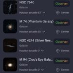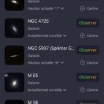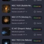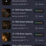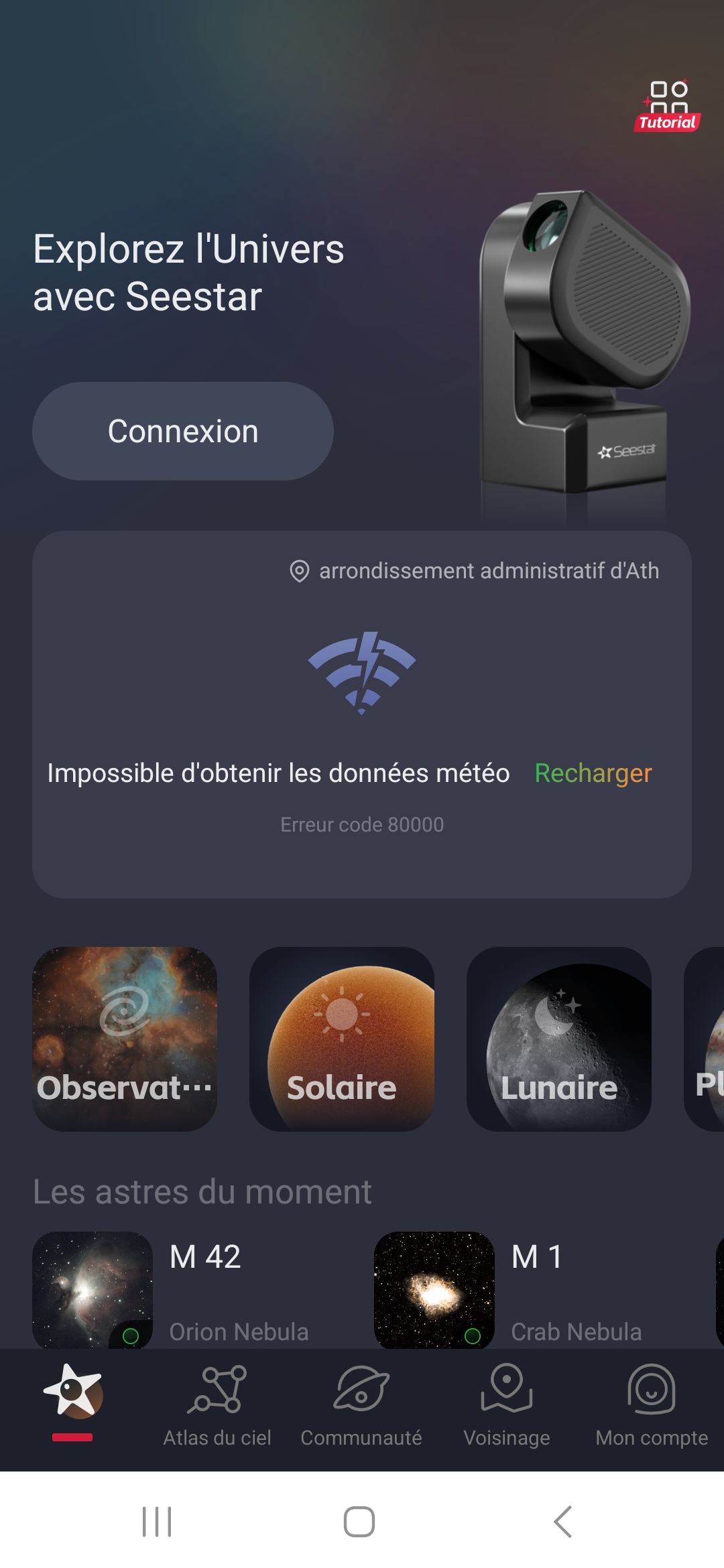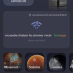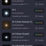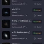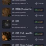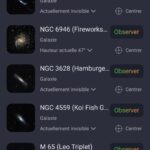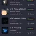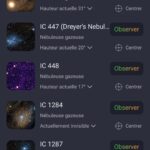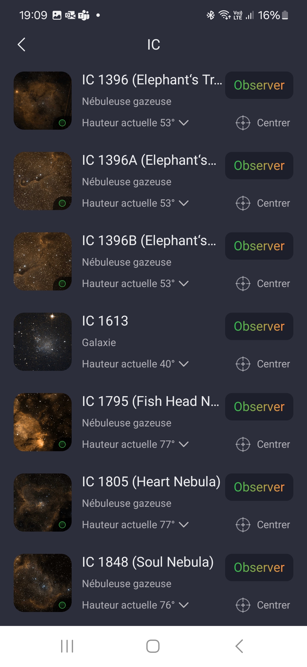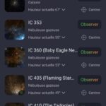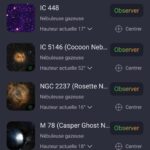 L'application est divisée en plusieurs rubriques, il y a d'abord la configuration du télescope, ensuite les informations météo de votre région, les catégories d'objets disponibles dans le catalogue, ensuite une sélection de ce que vous pouvez observer et quelques recommandations.
