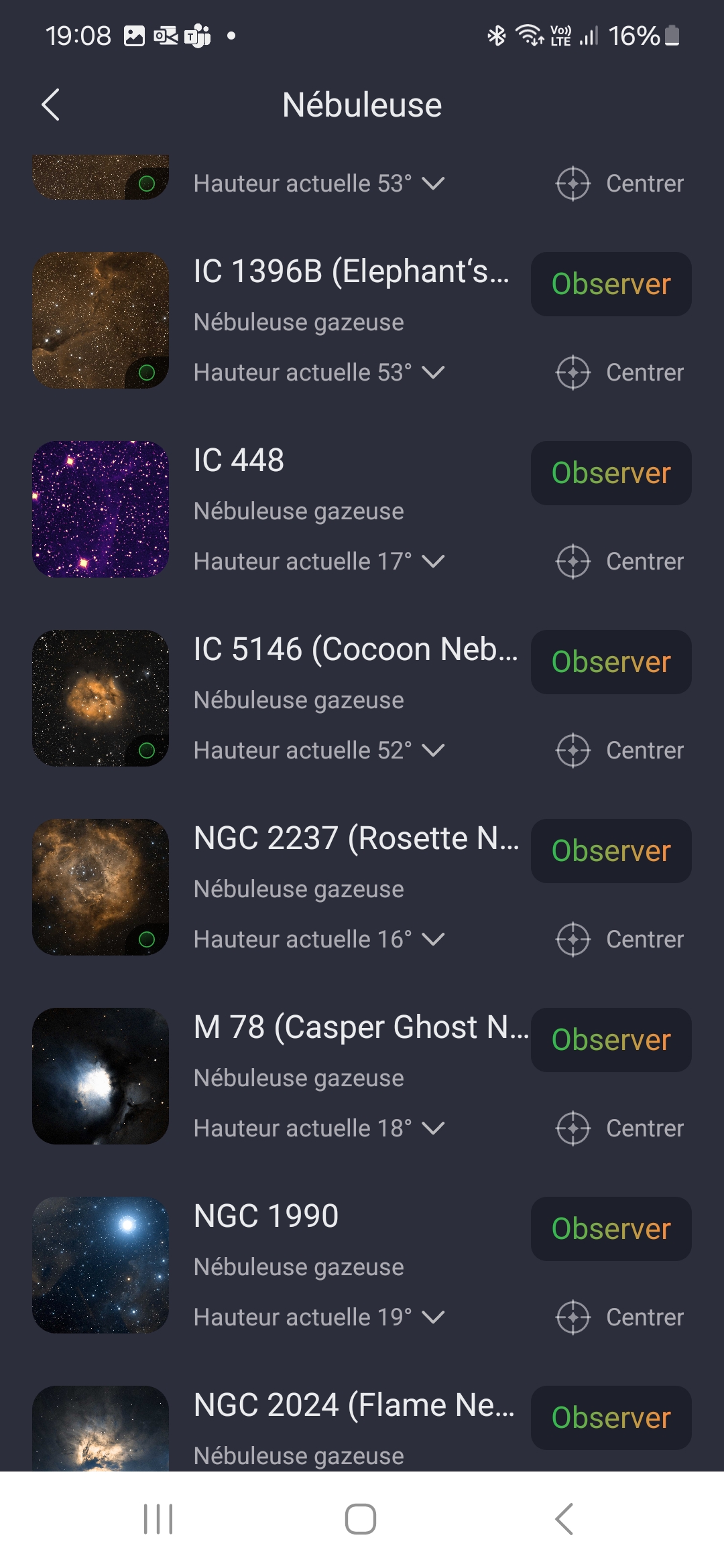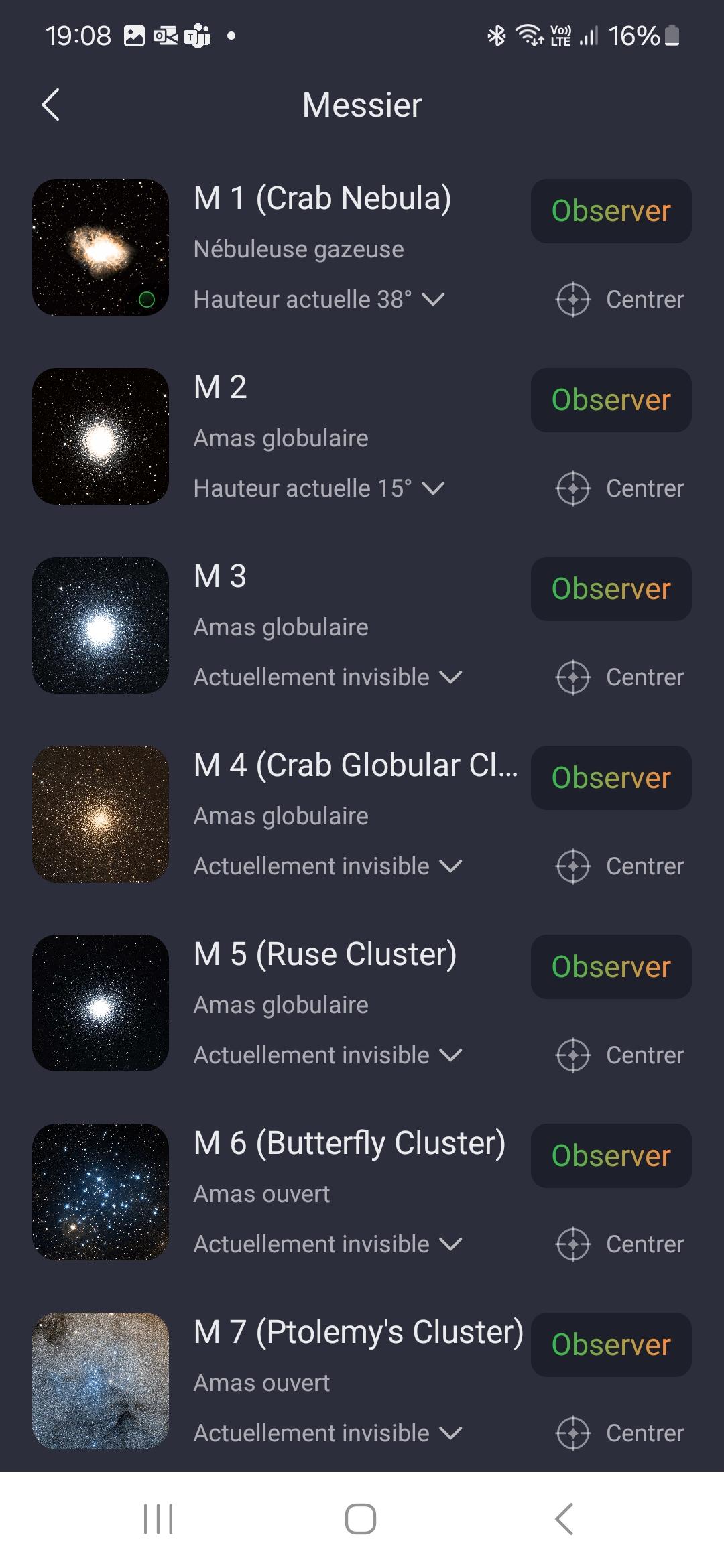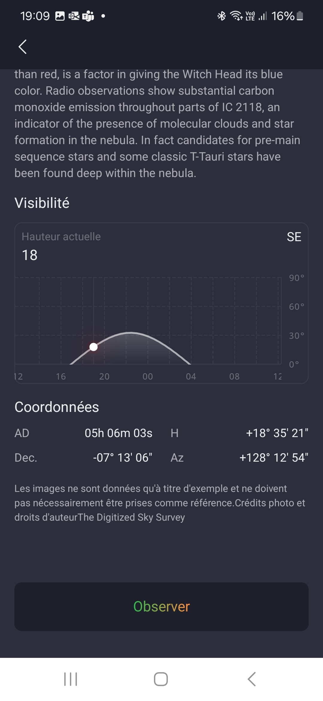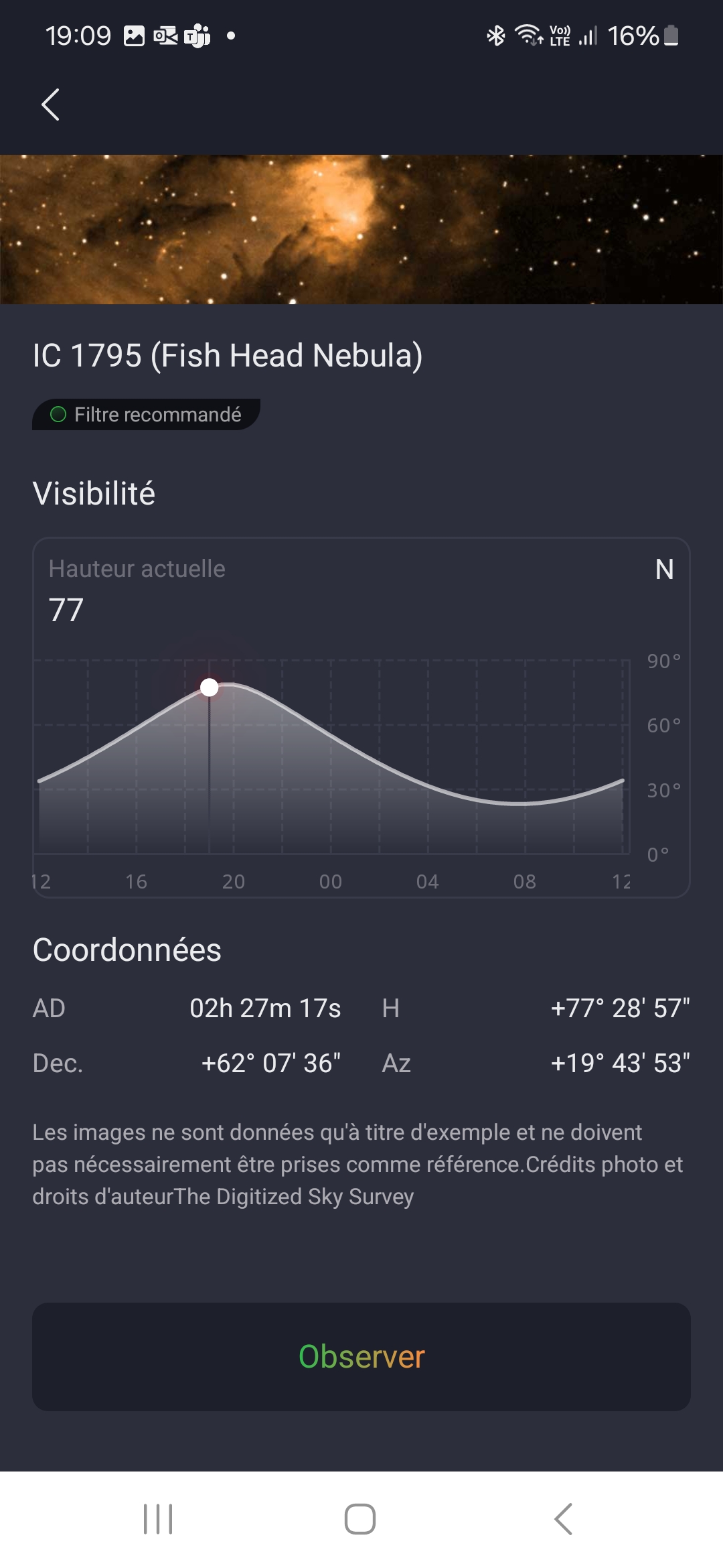 Si votre batterie vous lache car vous avez beaucoup observé le ciel, vous allez donc devoir attendre que la batterie se recharge pour récupérer vos images. Ce qui m'ennuie aussi dans ce mode de fonctionnement c'est qu'il n'y a pas de lien direct de l'application vers toutes les photos que vous avez prises. Sauf si j'ai loupé quelque chose, il faut passer par le mode observation, ce n'est pas très pratique.