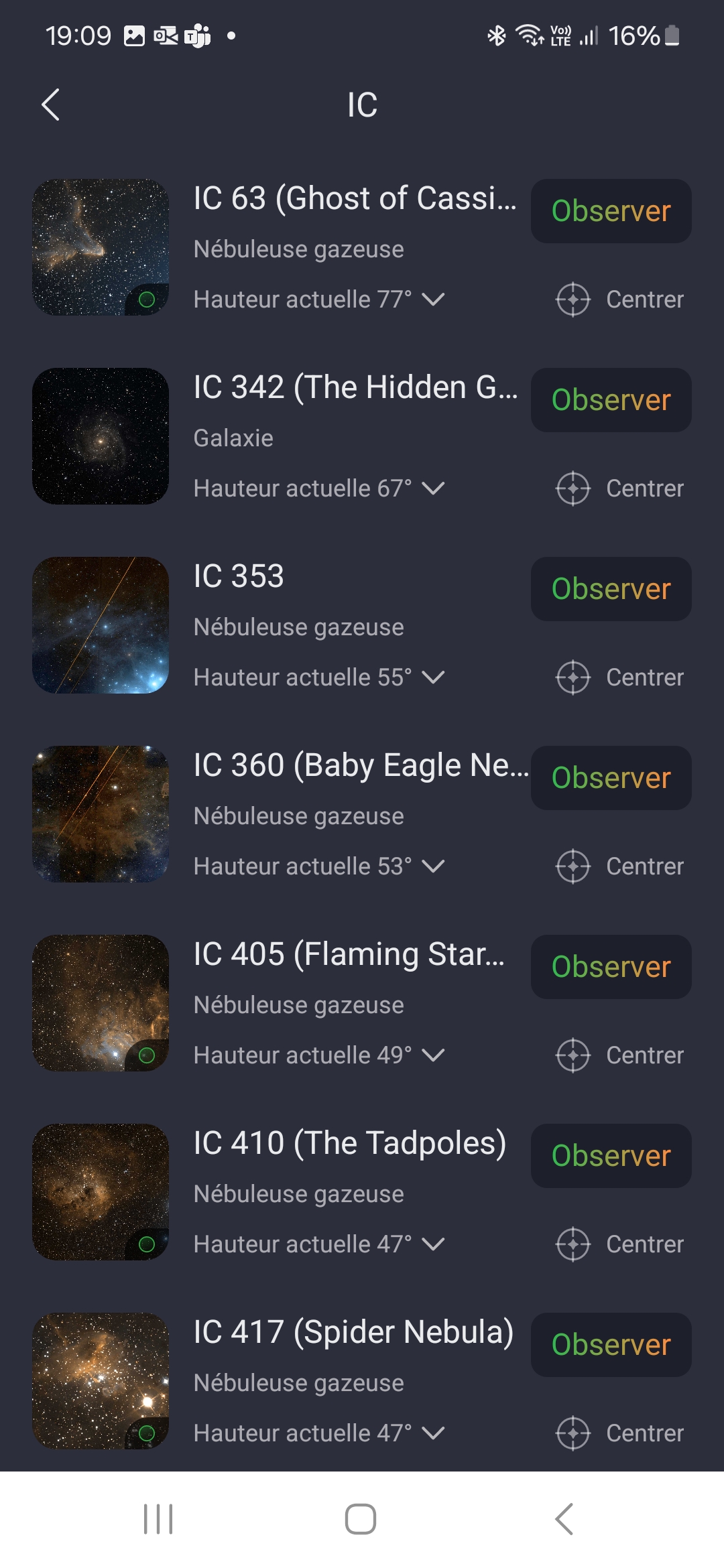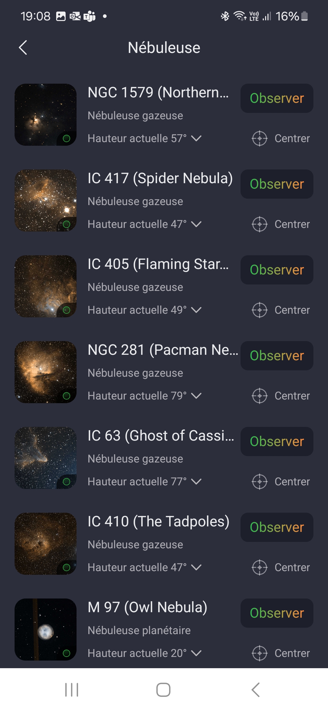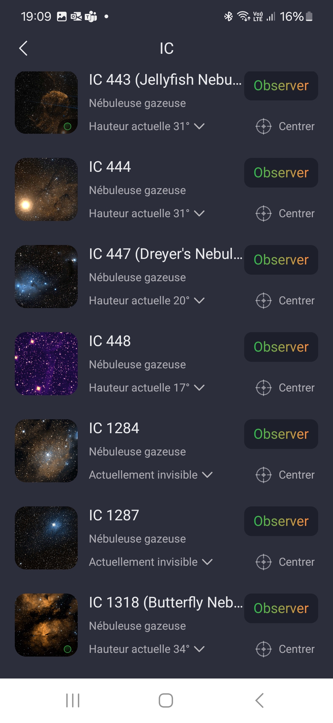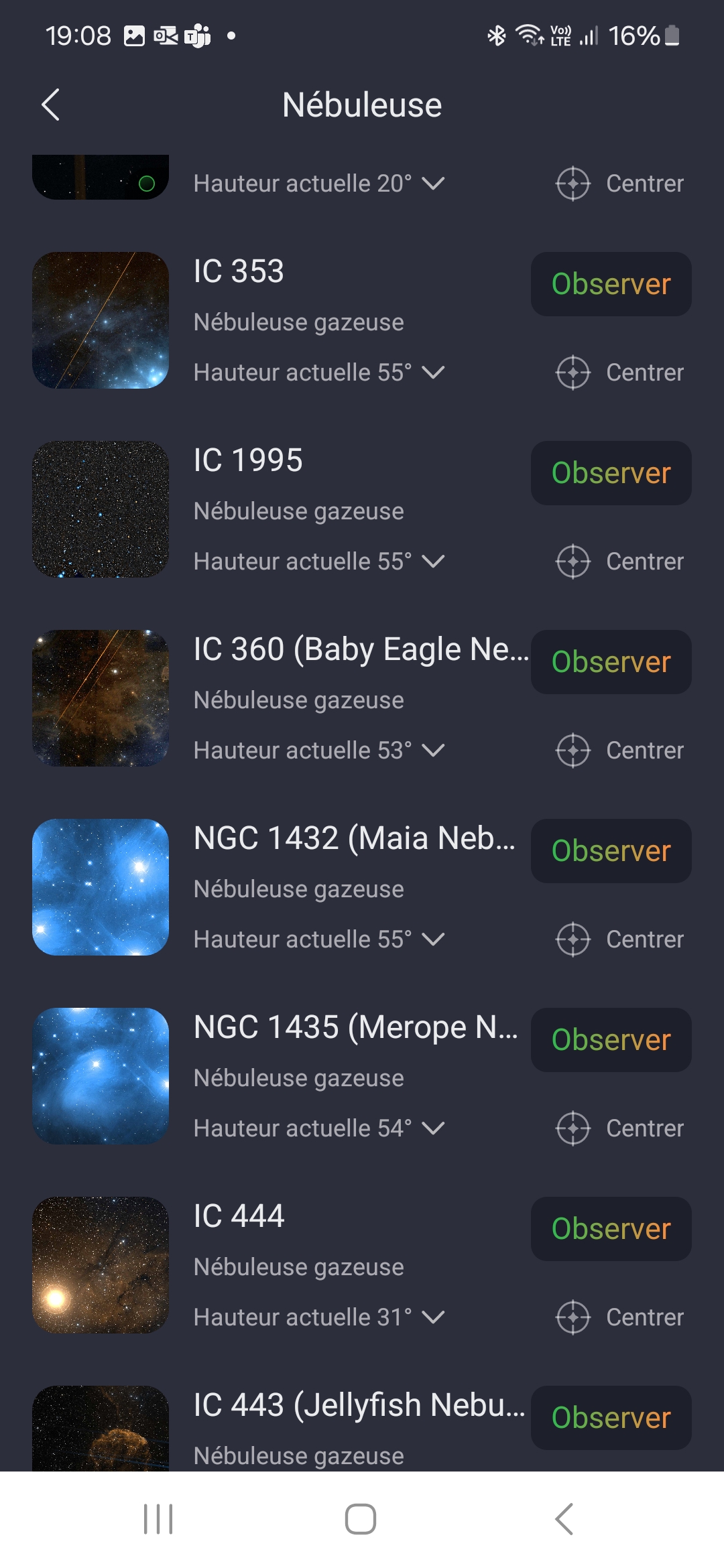 Si votre batterie vous lache car vous avez beaucoup observé le ciel, vous allez donc devoir attendre que la batterie se recharge pour récupérer vos images. Ce qui m'ennuie aussi dans ce mode de fonctionnement c'est qu'il n'y a pas de lien direct de l'application vers toutes les photos que vous avez prises. Sauf si j'ai loupé quelque chose, il faut passer par le mode observation, ce n'est pas très pratique.