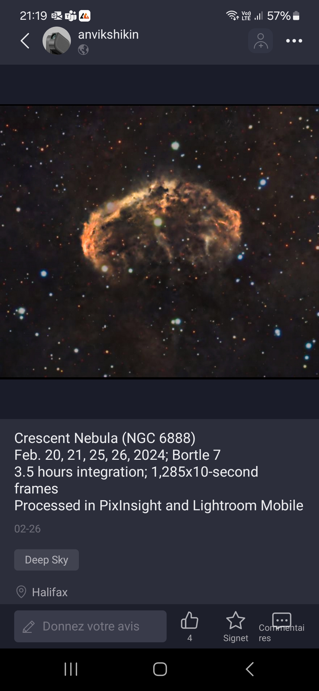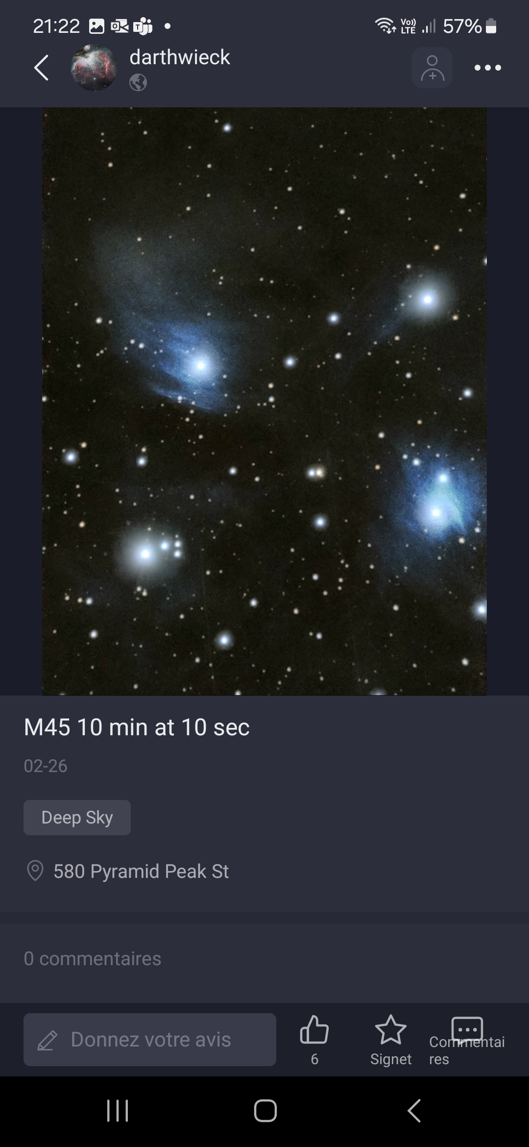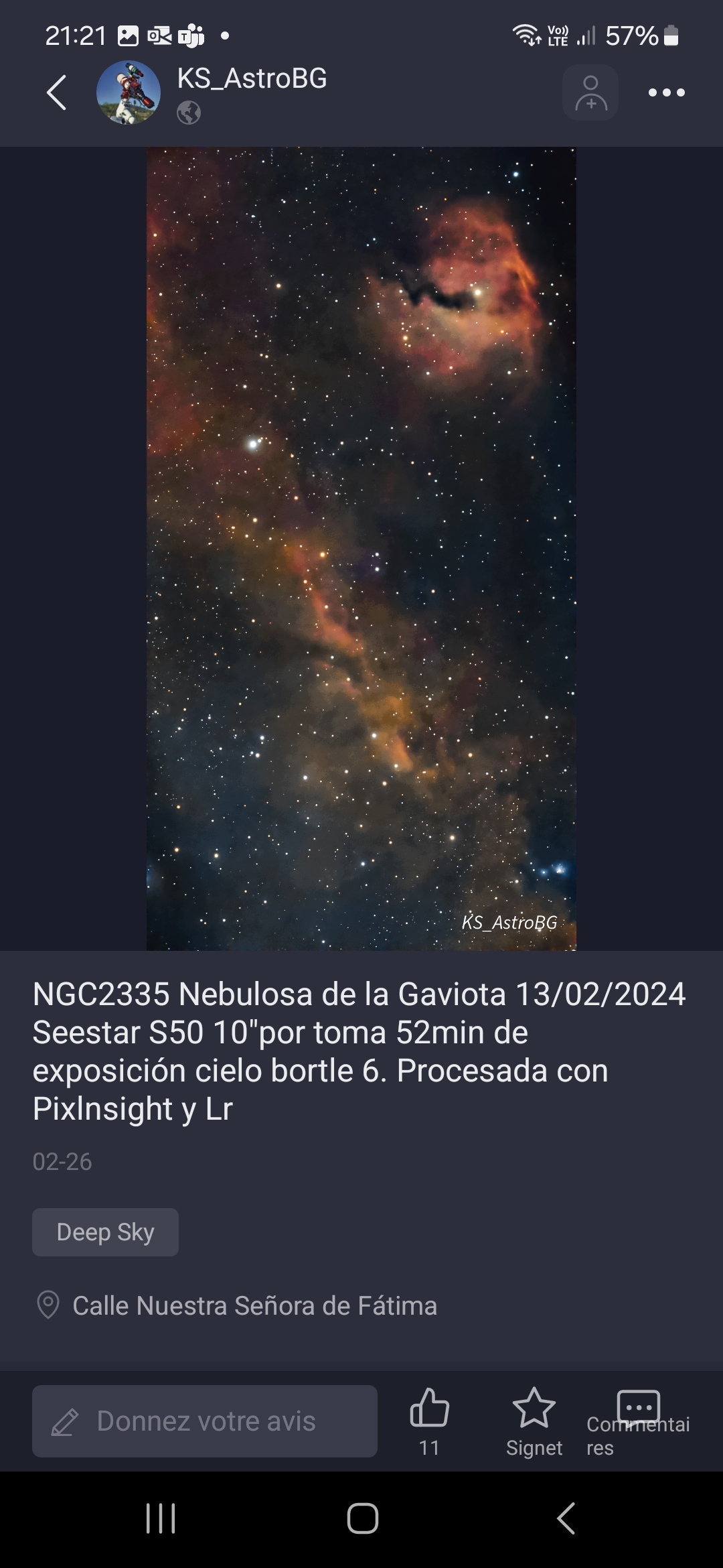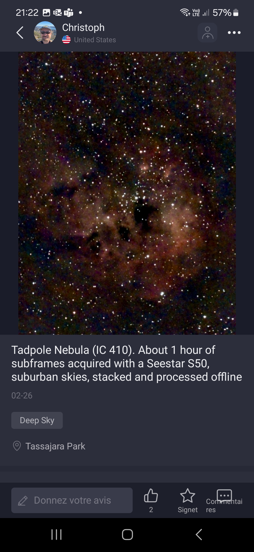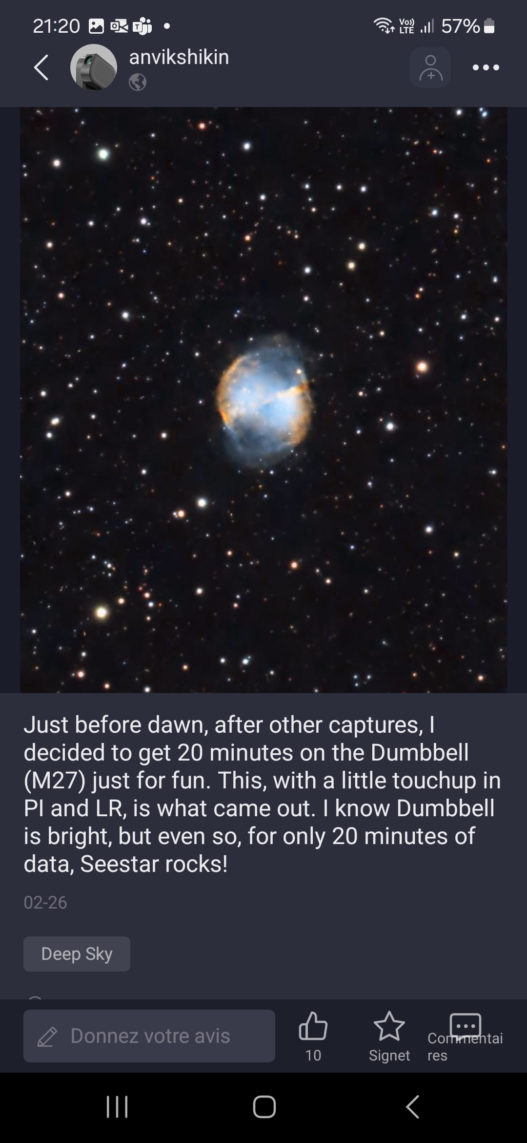 Le ciel en Belgique, ce n'est pas le top pour observer les étoiles. Heureusement d'autres utilisateurs du Seestar bénéficient de meilleures conditions et j'ai repris quelques exemples ci-dessous qui vous donneront surement envie de faire pareil.