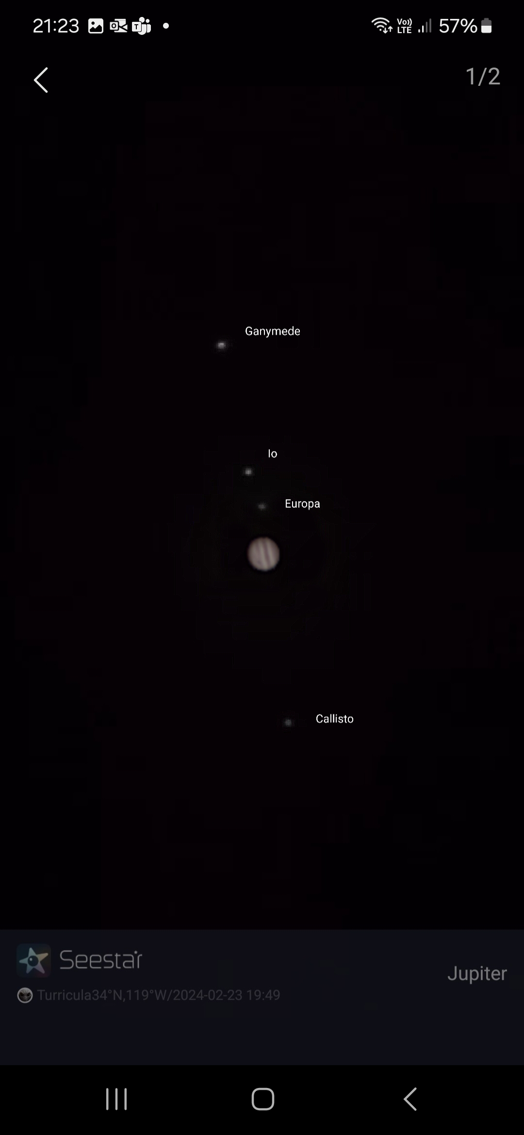 Le résultat est de nouveau assez bluffant. J'obtiens évidemment de meilleures photos avec mon télescope Orion mais pour un télescope électronique et avec une focale aussi petite, je trouve que le résultat est vraiment bon.