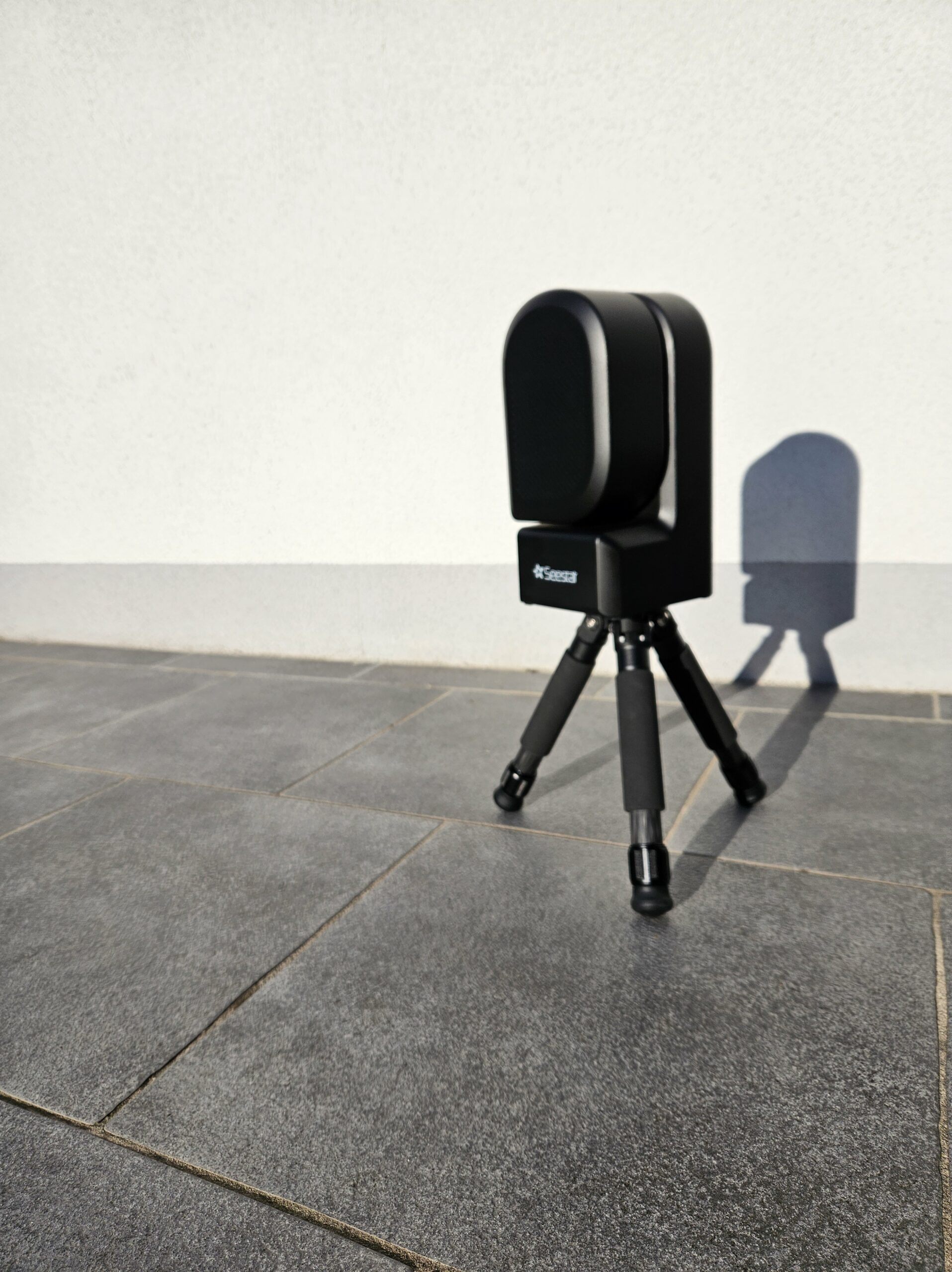 La première chose positive à dire sur ce téléscope c'est son format et sa facilité de mise en place. Le Seestar S50 est assez imposant en terme de taille et encombrement mais il est rudement bien conçu et je pense que ce genre de format (comme le Vaonis) va devenir la norme pour les autres produits de ce type qui vont sortir. Il suffit d'associer le bloc optique au trépied, vous le poser quelque par et hop, c'est parti. L'installation est super facile et accessible à tout le monde. J'ajouterais juste un petit bémol par rapport au trépied, il est équipé d'un niveau à bulle qui permet de vérifier si il est posé sur une surface plate. C'est très bien sauf qu'une fois que le télescope est installé, vous ne voyez plus le niveau à bulle. Comme dissocier le trépied du télescope à chaque utilisation n'est pas très pratique, je conseille d'utiliser un niveau à bulle indépendant pour vérifier si le télescope est de niveau.