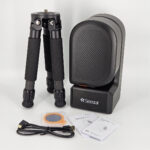 Dans la valisette en mousse on retrouve évidemment le télescope avec un câble d'alimentation (pas de chargeur), un manuel, un grand trépied (aussi grand que le télescope) et un filtre solaire. Le trépied a l'air vraiment solide, il est équipé de vis de serrage un peu partout. Il faut voir à l'usage si il sera aussi stable qu'il en a l'air mais la première impression est plutôt bonne.