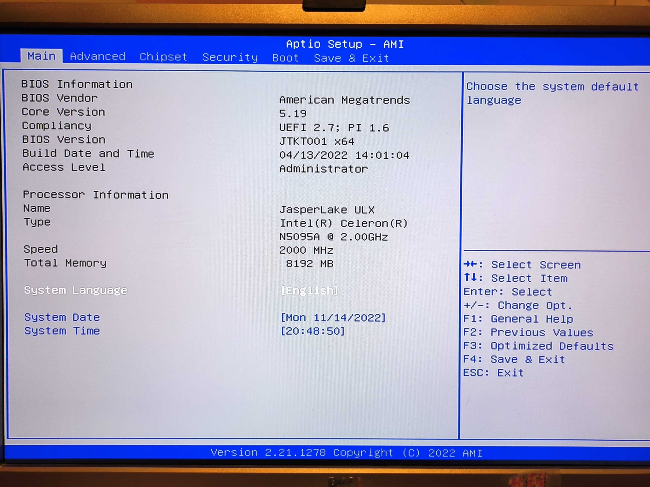 Le BIOS est accessible comme n'importe quel pc et j'ai été positivement surpris de voir que le BIOS était assez complet. J'ai eu d'autres mini pc où le choix était plus limité, je ne pouvais par exemple pas choisir l'ordre du boot or ce n'est pas le cas pour ce mini pc, il est vraiment complet. Évidemment, ce genre de choses ne va intéresser qu'une minorité d'acheteurs car monsieur tout le monde ne devrait en principe jamais jouer avec le BIOS.