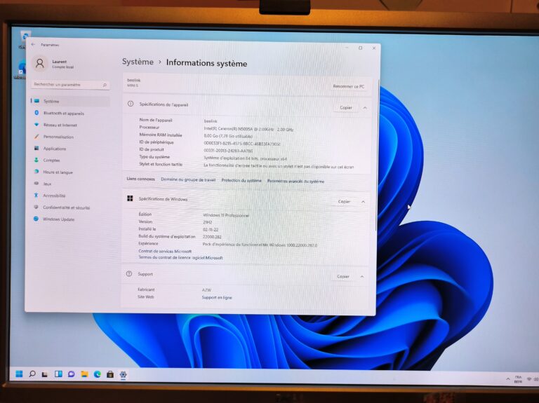 La version que j'ai achetée tourne sous Windows 11 Pro. Le premier démarrage va vous orienter vers les écrans de configuration de Windows 11, je n'ai rien remarqué qui sous-entendrait qu'il ne s'agit pas d'une version légitime. J'ai fait les mises à jour après installation et la clé d'activation associée à Windows 11 Pro a été acceptée et fonctionne sans problème.