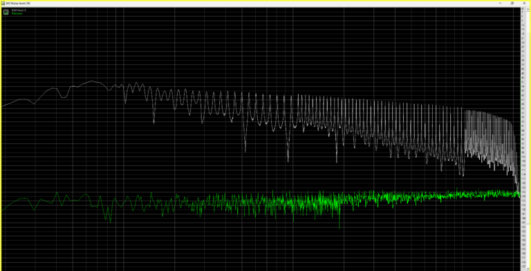 Je note dans les fréquences des moments où la fidélité dévie fortement. J'ai constaté que pendant mon test le son passait parfois sur les haut-parleurs alors que le casque était branché, cela ne durait que l'espace d'une seconde mais c'est arrivé plusieurs fois et cela pourrait expliquer certaines pointes sur le graphique suivant.