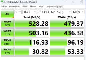 Ce sont de bons résultats pour une machine de ce type et en utilisation bureautique ce disque dur offrira un bon niveau de confort à l'utilisation.
