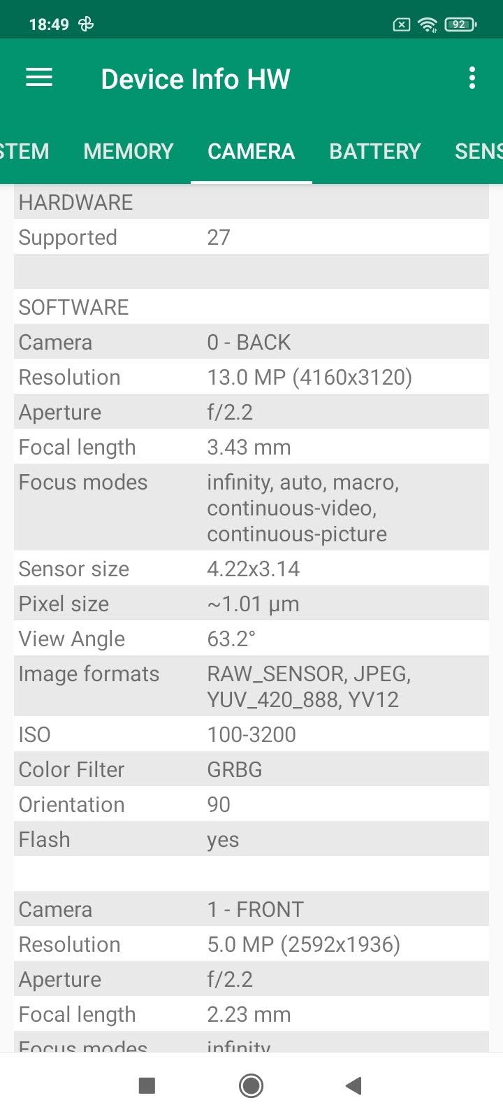 Le Redmi 9A est un téléphone simple, il n'est donc pas équipé d'une multitude de capteurs photos à l'arrière, il n'y en a qu'un. Je n'ai pas d'information sur la marque ou le modèle de ce capteur mais il s'agit probablement du même capteur que le Redmi 9C qui produit des images de 13 millions de pixels et une focale de 3.43mm.Application par défaut