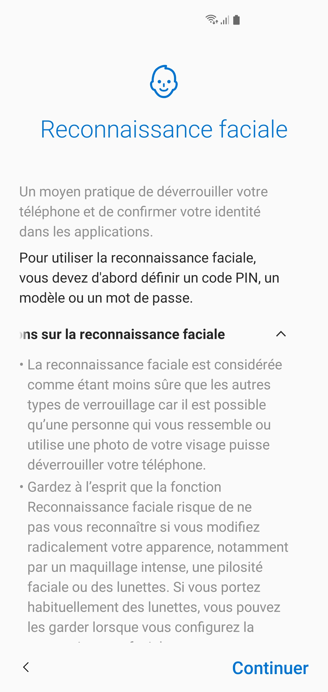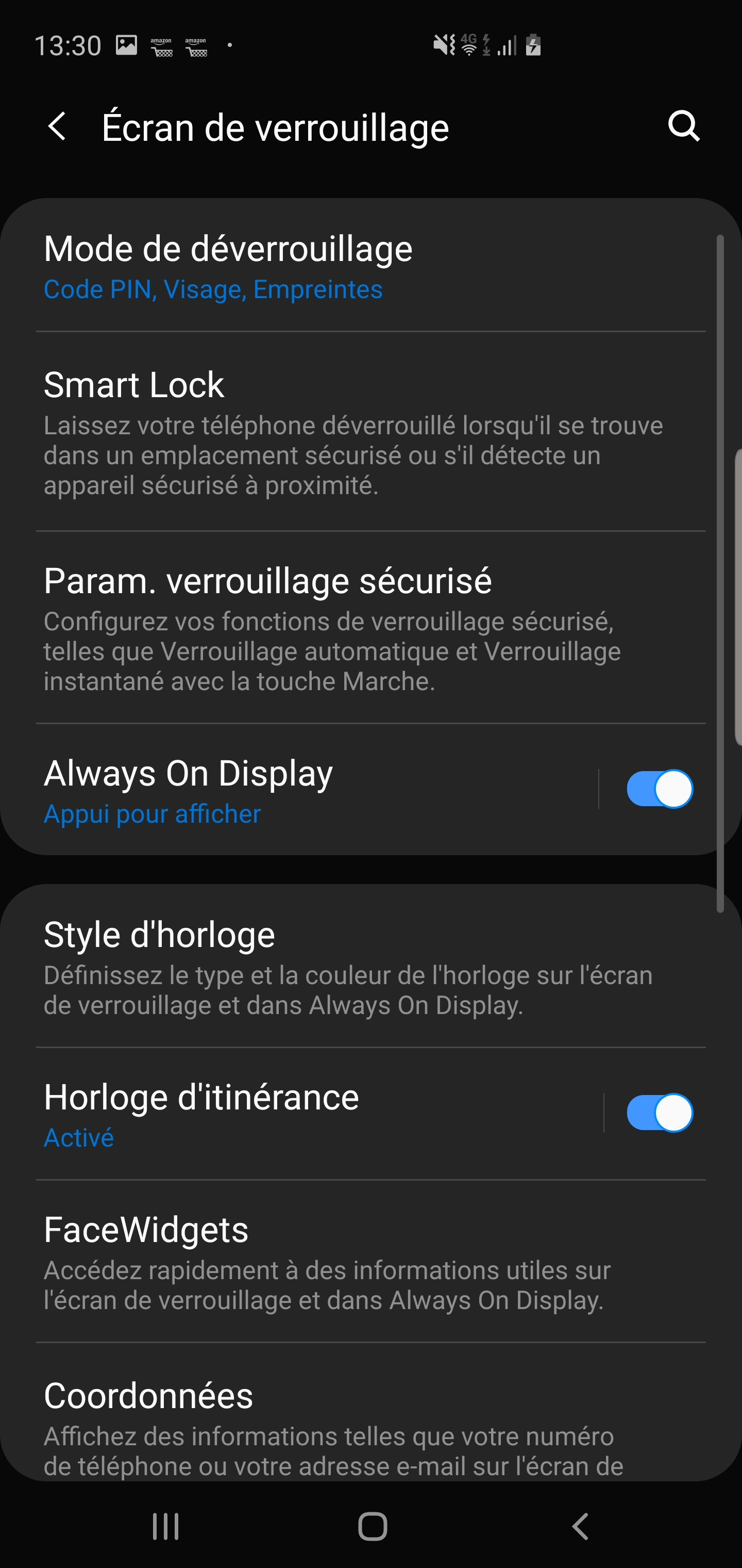 Le téléphone est équipé d'un capteur d'emprunte situé sur l'écran et d'un système de reconnaissance de visage. Vous pouvez utiliser l'un ou l'autre ou les deux.