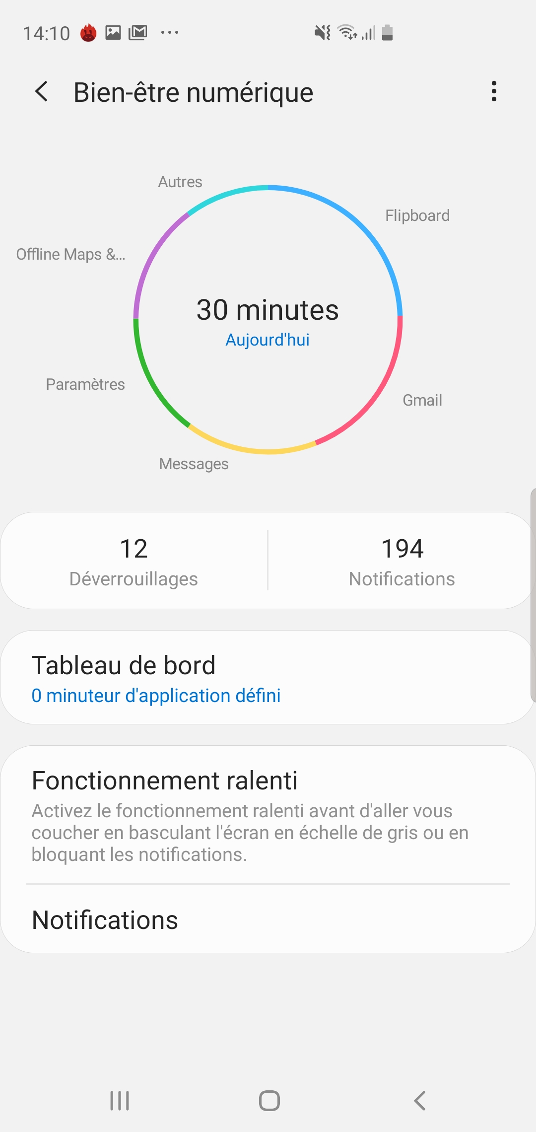 Samsung a développé certaines fonctionnalités spécifiques au niveau de la gestion de l'écran, de la batterie et de ce qu'ils appellent le bien être numérique.