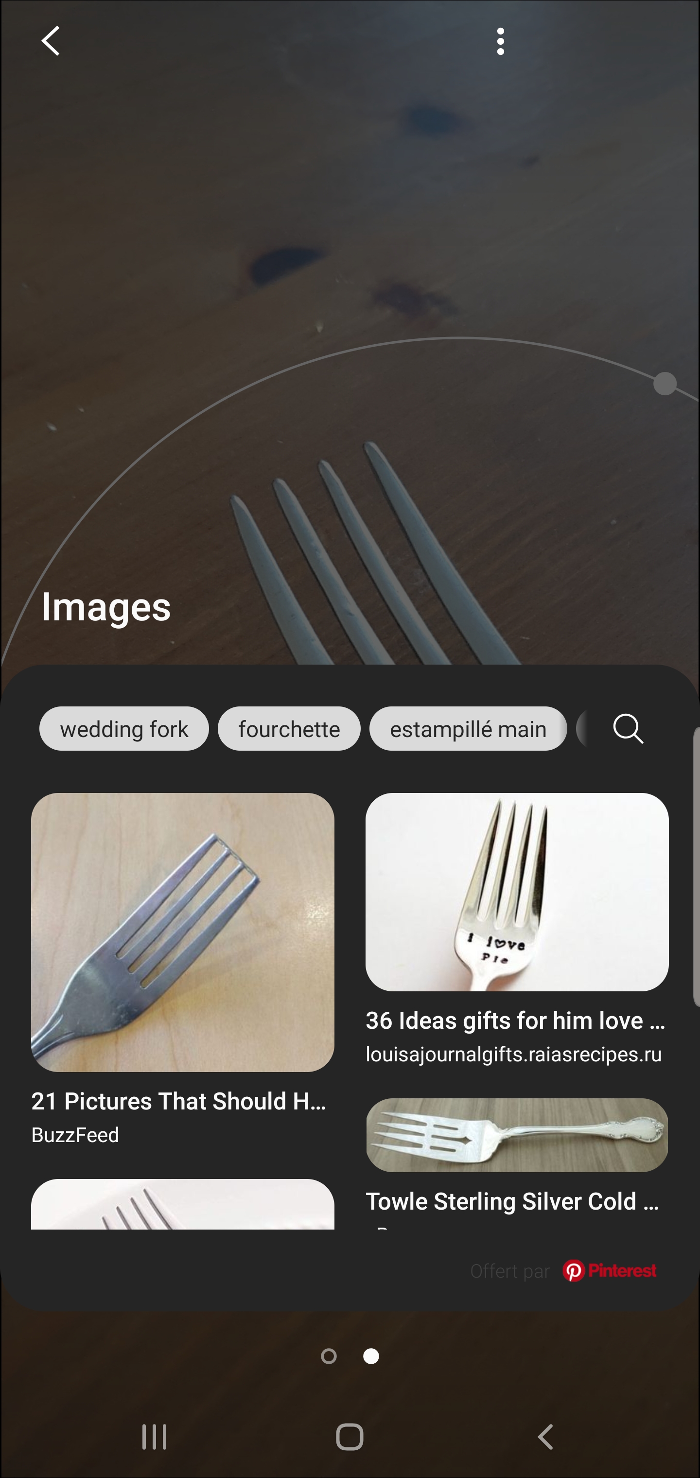 Il a bien reconnu qu'il s'agissait d'une fourchette, il propose en échange d'autres images de fourchette (quel est l'intérêt?) ainsi que des idées cadeaux de fourchette.