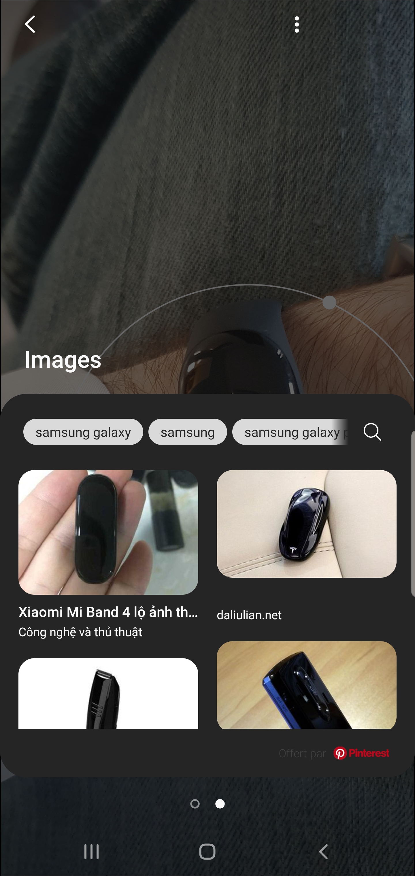 Ce bracelet est assez anonymore car il est complètement noir, il ne donne aucune indication de la marque ou du modèle. Bixby a reconnu un Mi Band 4, ok ce n'est pas correct mais les appareils se ressemble. Le premier lien proposé est un lien dans une langue asiatique, aucun intérêt donc. Le deuxième lien est pour un rasoir, aucun intérêt non plus.
