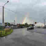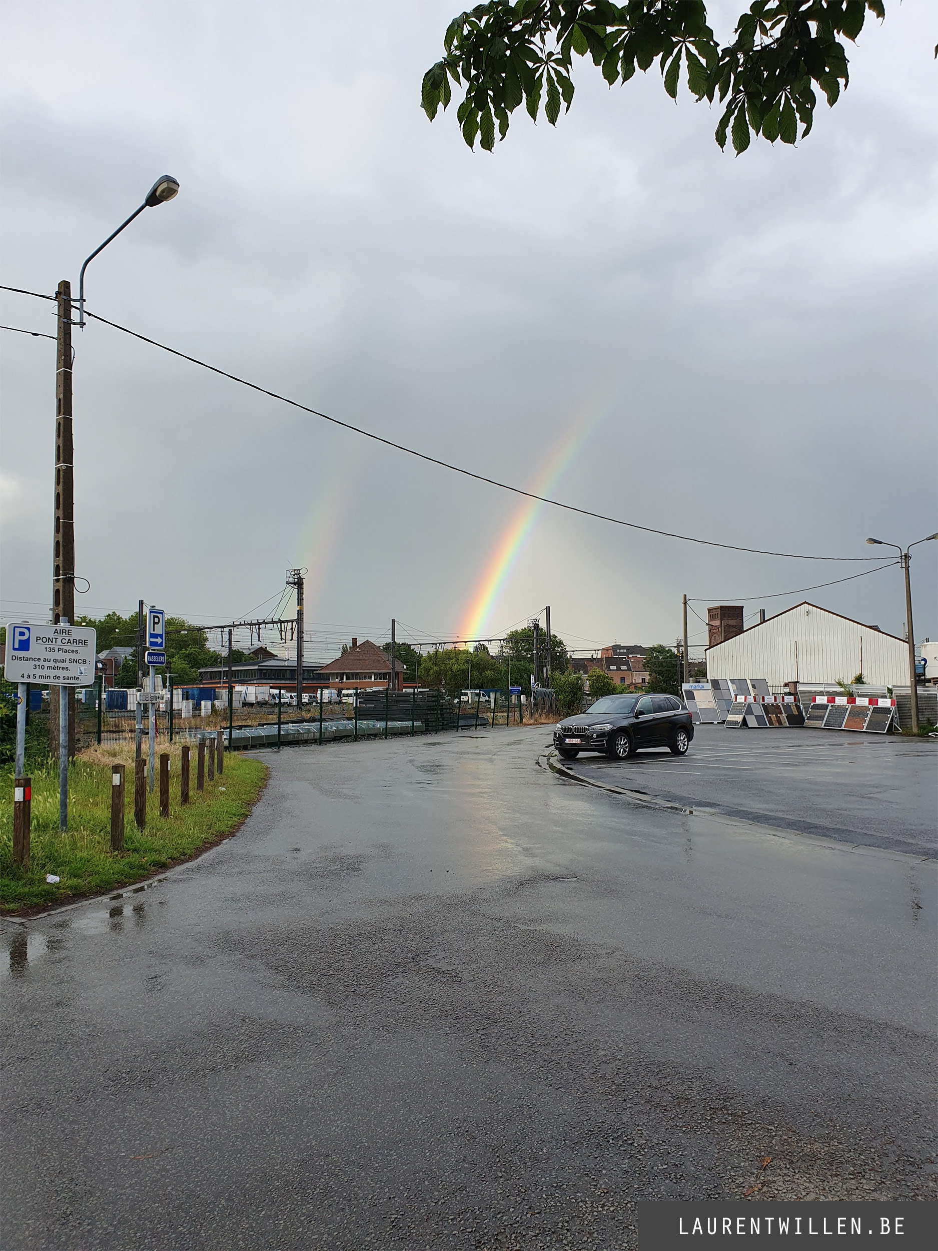 Dans cette série de photo j'ai eu la chance de photographier un double arc-en-ciel pendant un orage. Le ciel était très sombre et les couleurs de l'arc-en-ciel ressortent parfaitement. L'image est globalement sombre comme dans la réalité mais de nouveau, la dynamique des zones claires et sombres est excellente. Si vous prêtez attention aux détails vous verrez que le Samsung accentue fortement les petits détails et même à une certaine distance il est encore possible de lire des panneaux ou distinguer des éléments de petite taille.